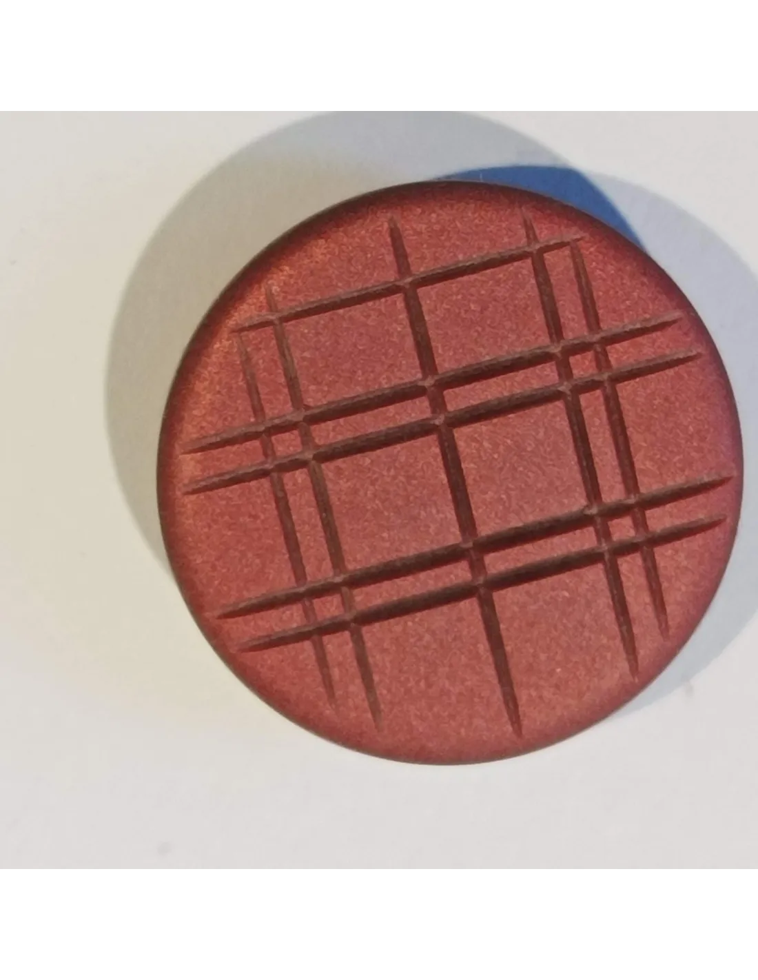 Bouton polyester à tunnel, 27mm, rond, carreaux bordeaux