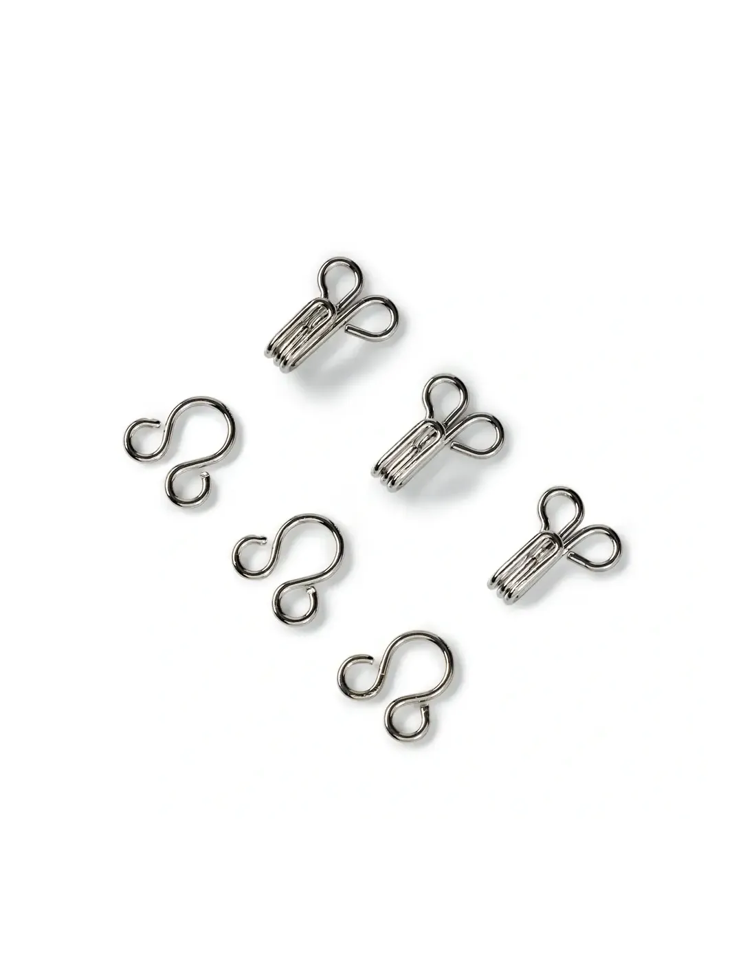 Pour tous les vêtements qui doivent avoir des fermetures sobres non visibles, les agrafes et œillets en laiton à revêtement noir ou argent sont parfaitement appropriés. Ces fermetures sans bavures dans les tailles 1, 2 et 3 sont disponibles dans la gamme Prym dans des emballages de 24 pièces ou de 1000 pièces pour les professionnels. Les agrafes et portes peuvent être facilement cousues à travers les œillets latéralement incurvés dans les pantalons, vestes, jupes, chemisiers ou lingerie. Elles sont utilisées par exemple pour sécuriser davantage les fermetures à glissière des jupes, des pantalons ou des robes. La finition impeccable de qualité supérieure de ces fermetures revêtues garantit un excellent confort de port même en contact direct avec la peau.