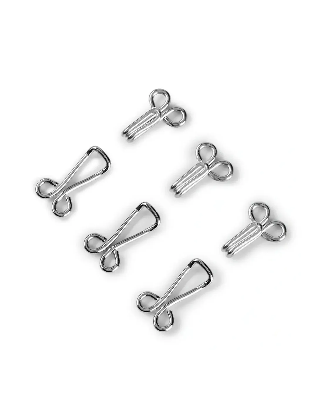 Les agrafes et portes pour vestons de la taille 9 sont des fermetures appropriées pour vêtements plus lourds tels que les vestes et les costumes. Contrairement aux boutons, les agrafes et œillets en acier à revêtement argenté ou noir peuvent être cousus de manière presque invisible dans les vêtements de sorte que le design du tissu ne soit pas affecté par la patte de boutonnage. Les agrafes et portes pour vestons sont disponibles dans la gamme de Prym en set de paquet de 12 et séparément en carton de 500 pièces. Les fermetures en acier inoxydable sont sans bavures et peuvent être ouvertes et fermées facilement.