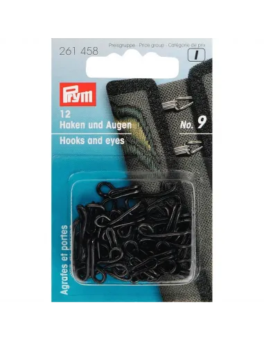Les agrafes et portes pour vestons de la taille 9 sont des fermetures appropriées pour vêtements plus lourds tels que les vestes et les costumes. Contrairement aux boutons, les agrafes et œillets en acier à revêtement argenté ou noir peuvent être cousus de manière presque invisible dans les vêtements de sorte que le design du tissu ne soit pas affecté par la patte de boutonnage. Les agrafes et portes pour vestons sont disponibles dans la gamme de Prym en set de paquet de 12 et séparément en carton de 500 pièces. Les fermetures en acier inoxydable sont sans bavures et peuvent être ouvertes et fermées facilement.