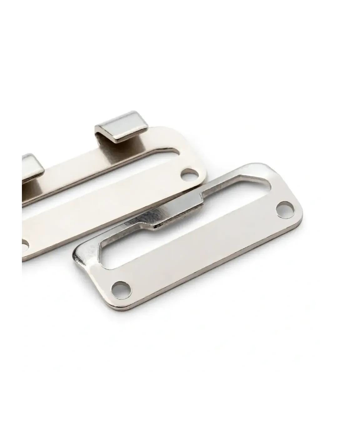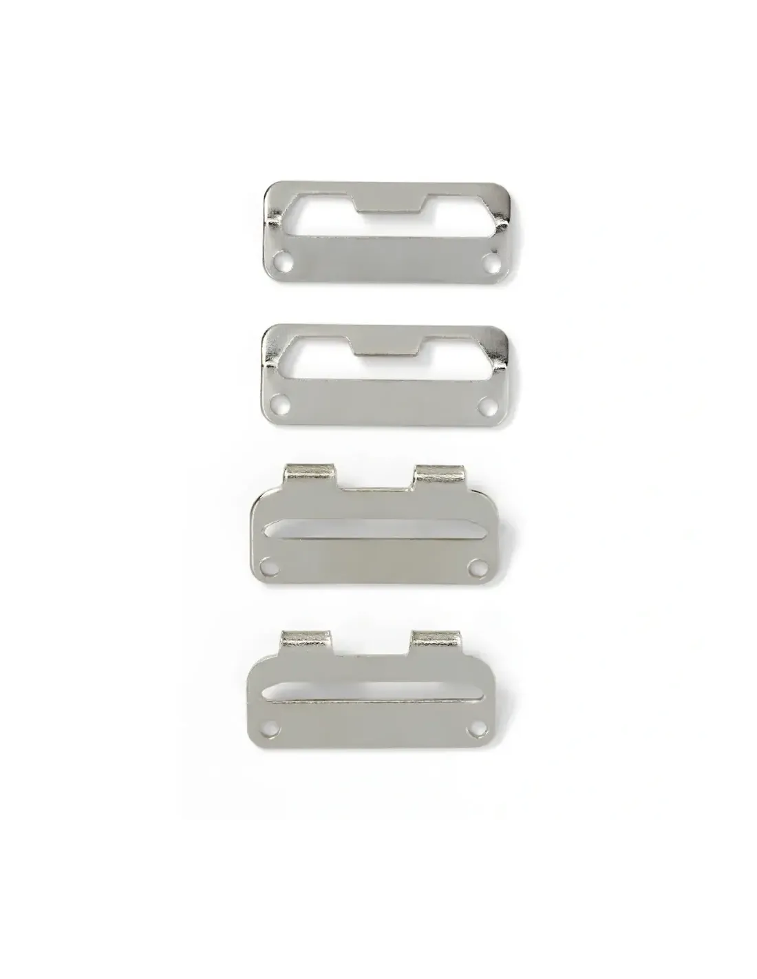 Un vrai classique ! L’agrafe pour pantalons et jupes est optimale quand il s’agit de fermer rapidement, simplement et presque invisiblement pantalons et jupes. Grâce à la finition plate, elle ne laisse aucune trace. Sobre d’apparence et fabriquée en acier inoxydable, l’agrafe pour pantalons et jupes séduit surtout par sa surface lisse et ses bords arrondis – ce qui permet une manipulation aisée lors de l'ouverture et de la fermeture. Également la couture est facile car trois boutons à coudre sont prévus dans l’agrafe pour pantalons, la barrette de retenue a aussi deux trous. Les agrafes pour pantalons ou également les agrafes pour jupes sont disponibles dans les couleurs argent et noir et en différentes largeurs au choix. Chaque paquet comprend deux agrafes et barrettes.