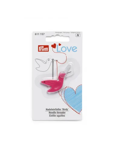 Ce joli enfile-aiguilles « Birdy » de la série Prym Love est un accessoire précieux pour les amateurs de couture débutants et professionnels. Dans son coloris fuchsia, il fait exactement ce que l’on attend d’un enfile-aiguilles : Une manipulation simple grâce à la poignée qui donne une stabilité sûre pendant l’enfilage. Le couvercle transparent et rabattable en plastique offre une protection supplémentaire contre les blessures. Autre avantage : Le coupe-fil intégré remplace une paire de ciseaux ! Ainsi, enfiler des fils devient un réel plaisir, même pour les débutants en couture. L’enfile-aiguilles « Birdy » est adapté à la plupart des aiguilles à coudre, mais pas aux aiguilles broderie en perles.