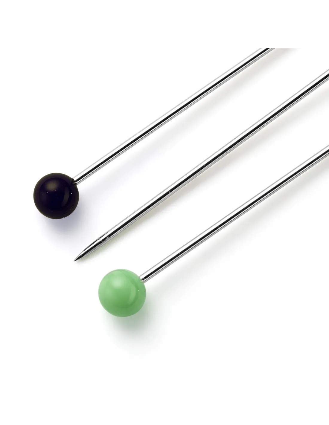 La version premium des épingles à piquer sont les épingles tête de verre. Elles sont caractérisées par une tête ronde en verre de haute qualité résistante à la chaleur. Les têtes de verre sont disponibles en différentes couleurs que l’on peut reconnaitre facilement dans le tissu après la couture. La tige lisse des aiguilles en acier trempé a une dureté du ressort équilibrée, c’est pourquoi elle ne peut pas se déformer ou se casser. La pointe fine pénètre facilement à travers tous les tissus et protège de cette manière les fibres. Prym offre les épingles tête de verre avec des têtes de verre triées en jaune, blanc, noir ou multicolore en longueurs de 30 mm à 48 mm.