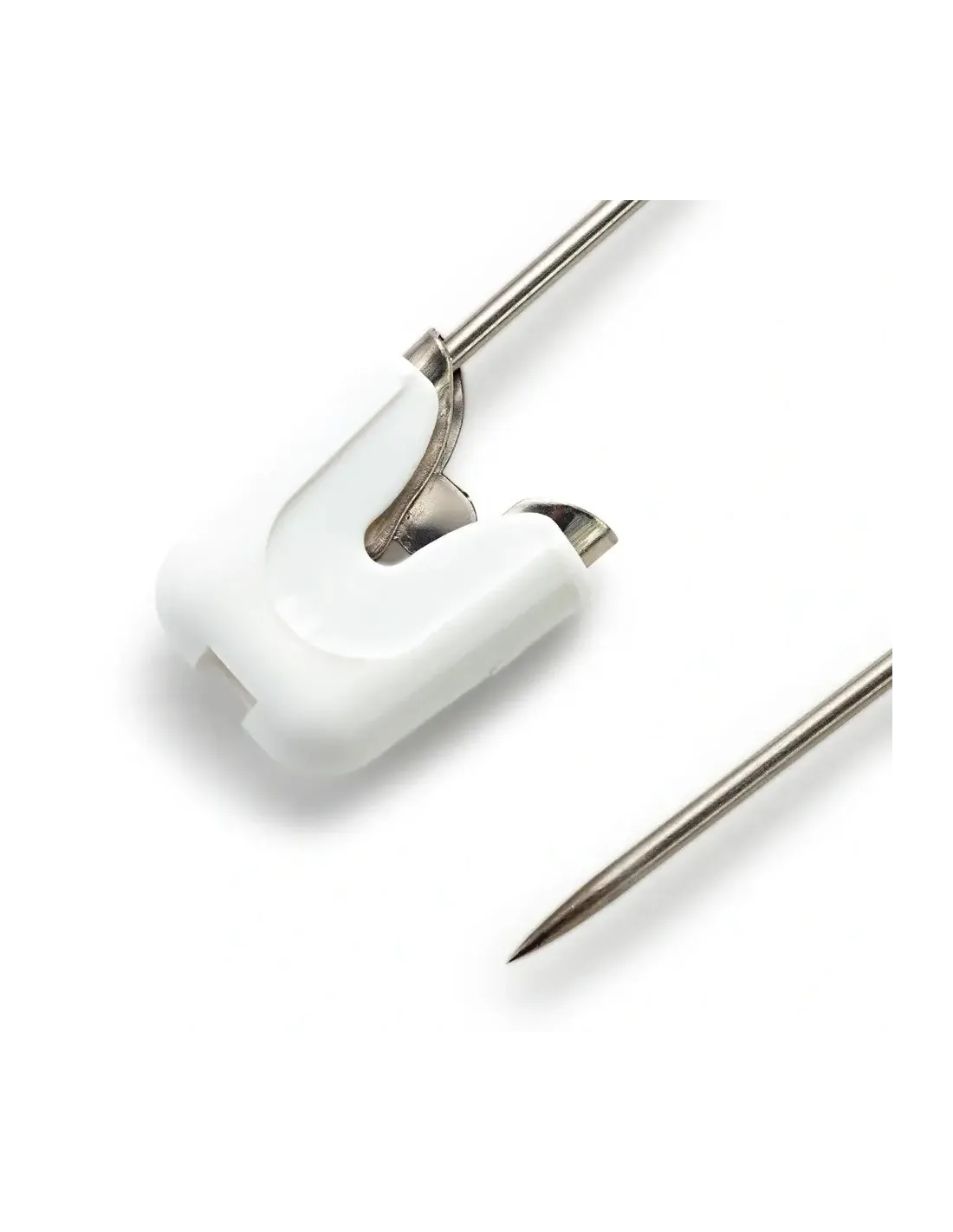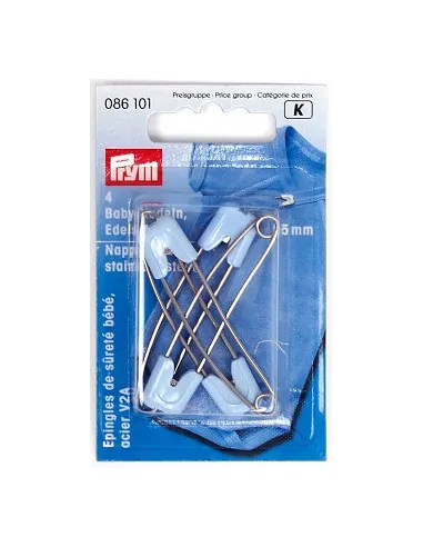 Si vous avez des enfants, vous vous souvenez d’avoir fermé à contrecœur les grenouillères, les couches en tissu ou autres avec des épingles de sûreté. Pour garantir que les épingles ne s’ouvrent pas involontairement, Prym offre dans ce cas les épingles de sûreté pour bébé avec double fermeture. Un capuchon plastique sur la capsule de fermeture verrouille en outre l'aiguille en acier inoxydable de haute qualité et ne la libère que quand le capuchon est relevé. Les épingles avec sécurité enfants sont disponibles dans les couleurs rose, bleu clair et blanc. Pour un grand confort de port, les deux tiges d’aiguilles sont légèrement incurvées dans une direction. Ainsi elles sont parfaitement adaptées aux courbes du corps.