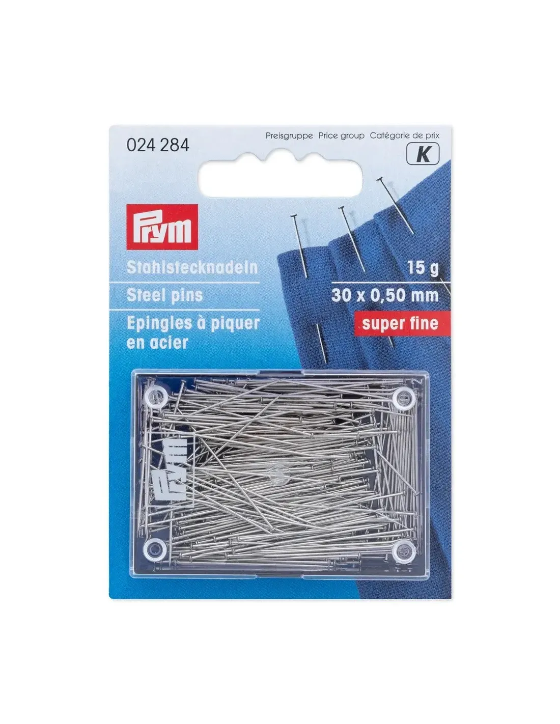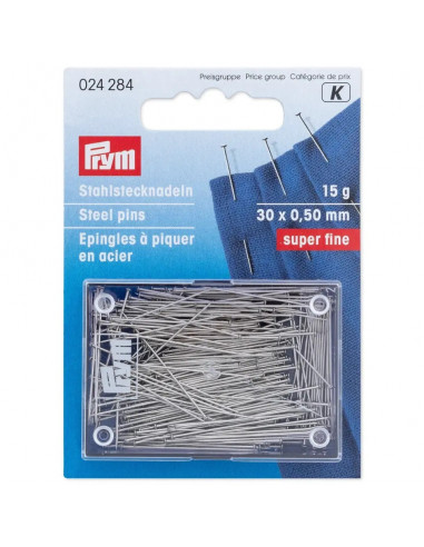 Ces épingles á piquer sont le premier choix pour les tailleurs professionnels et amateurs pour les travaux de marquage. Les épingles en acier trempé ont non seulement une bonne protection contre la rouille mais disposent aussi d’une dureté du ressort bien équilibrée. Leurs pointes effilées pénètrent en douceur à travers tous les tissus en protégeant les fibres et par leur tête de forme spéciale, elles peuvent être saisies et insérées de façon optimale. Prym offre ces épingles à piquer en acier universelles dans différentes boîtes de rangement.