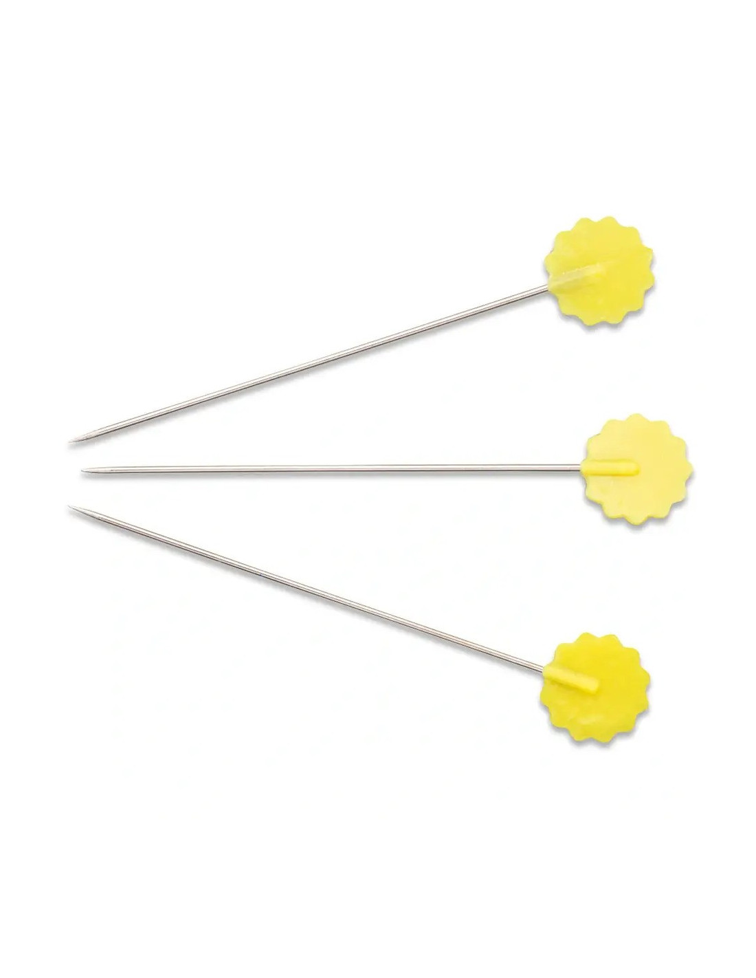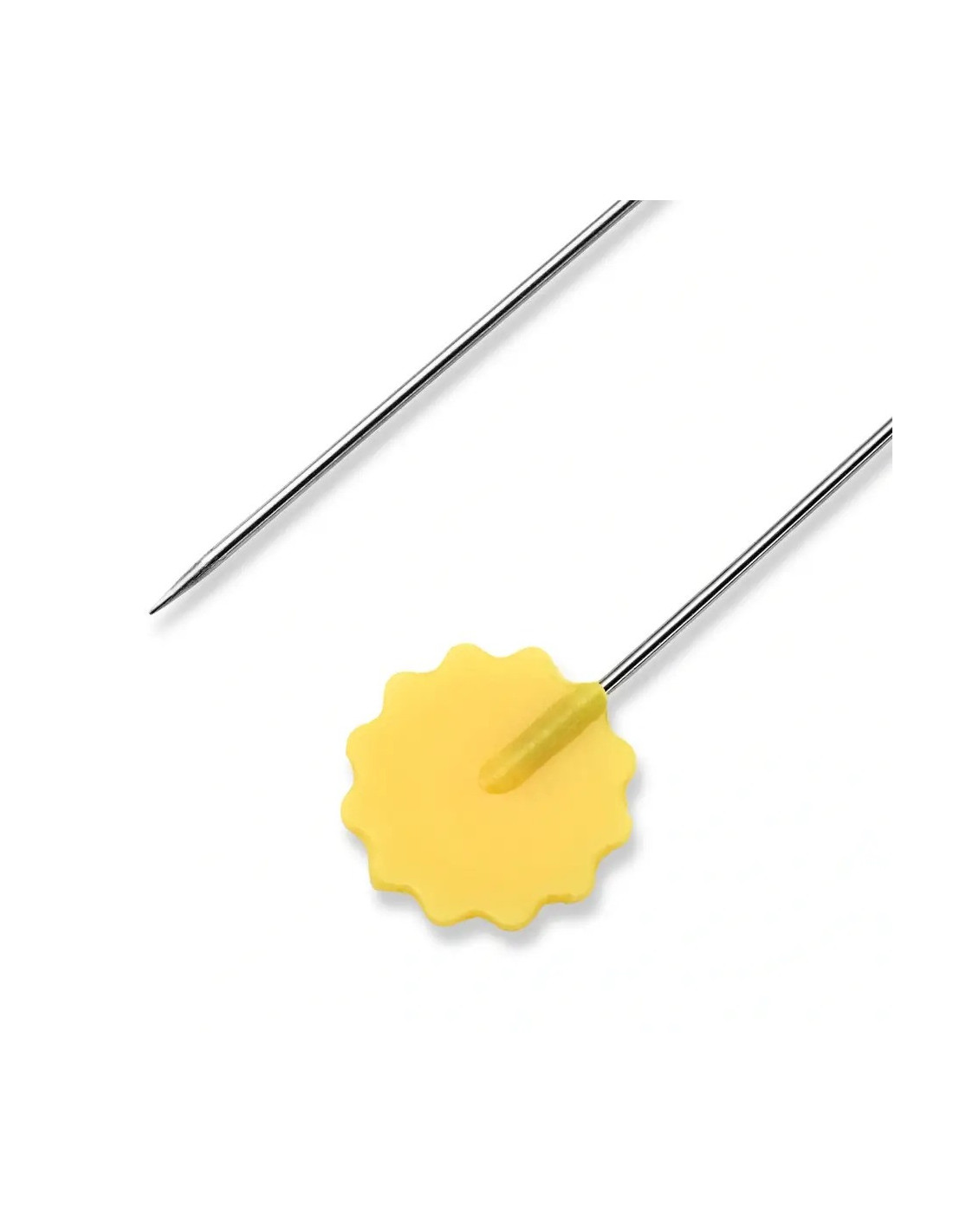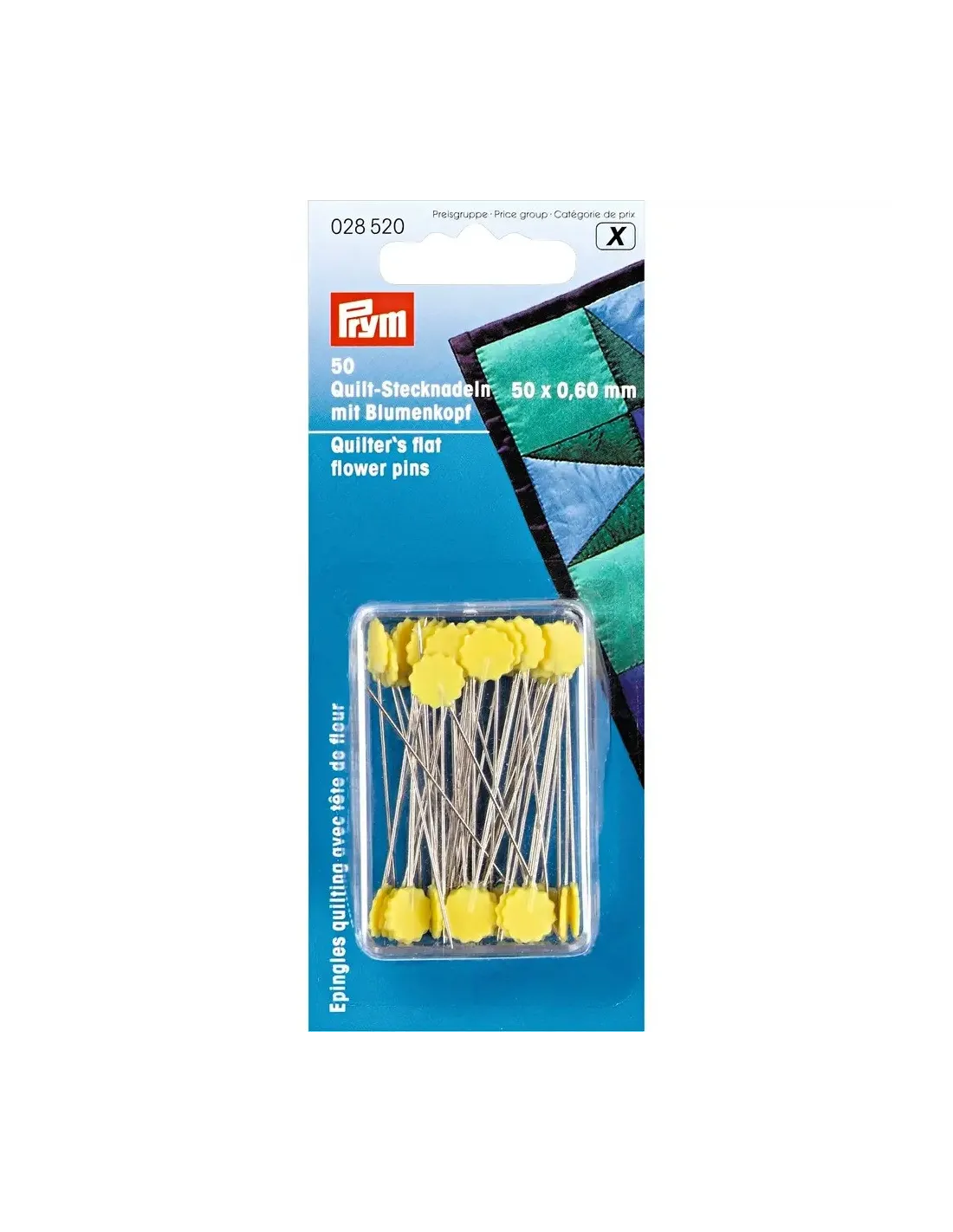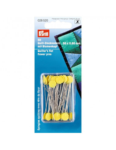 Ces longues épingles à piquer sont équipées d'une tête plate en forme de fleur en plastique jaune résistante à la chaleur, et plus particulièrement adaptées aux besoins en patchwork et quilting. Le raccord extrêmement stable entre la tige et la tête pour un usage intensif et un revêtement uniforme de la surface non poreuse complètent le profil professionnel. La pointe fine pénètre facilement à travers plusieurs couches de tissu sans endommager les fibres. Les têtes plates des épingles à piquer permettent même que vous pouvez simplement les repasser au fer. Prym offre les épingles à piquer quilting en 50 pièces dans une boîte en plastique transparent.