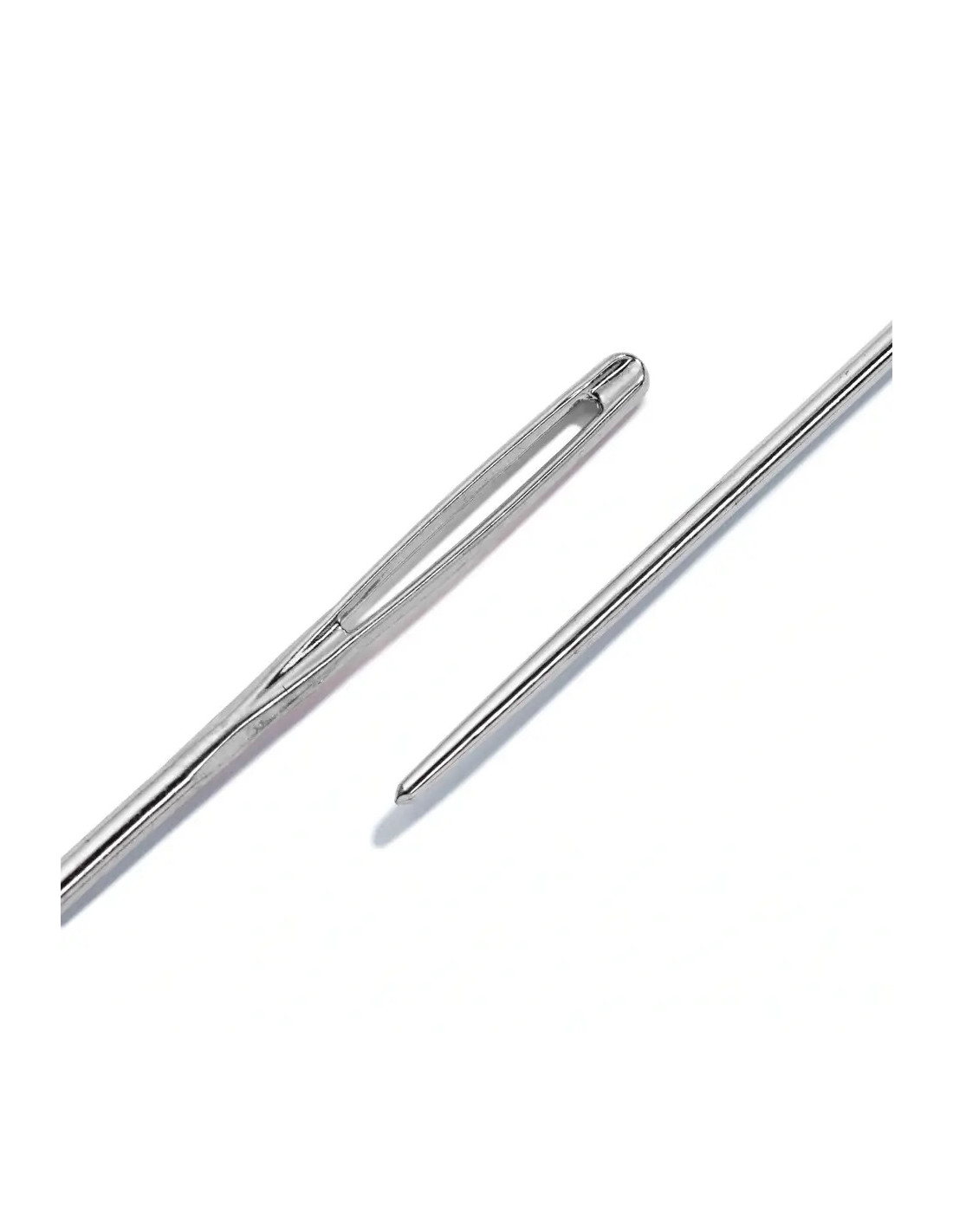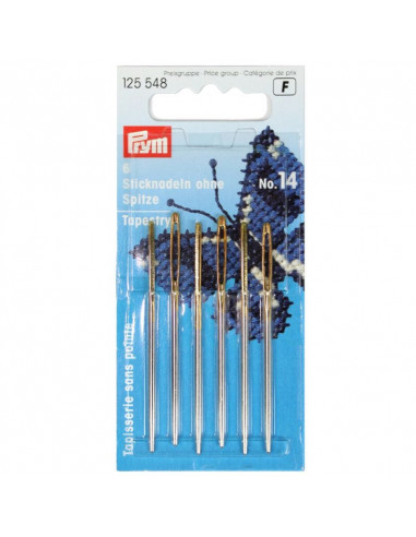 Les aiguilles à tapisserie sans pointe conviennent pour la broderie avec des matériaux plus grossiers telle la laine. En effet, l’extrémité arrondie ne traverse pas les fibres mais les pousse avec ménagement de côté. Les aiguilles avec un chas perforé symétriquement sont absolument exemptes de bavures et en acier trempé. Le chas des aiguilles à tapisserie est en conséquence grand pour enfiler laine ou fils grossiers. Un rapport équilibré de longueur et de puissance leur donne également une bonne élasticité.