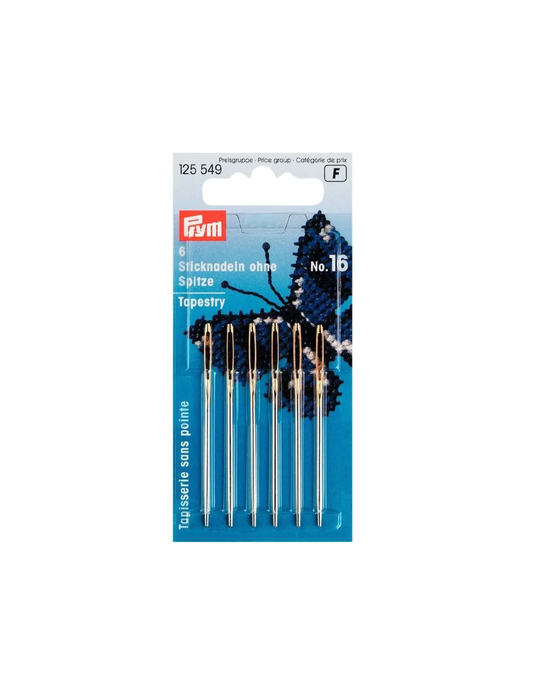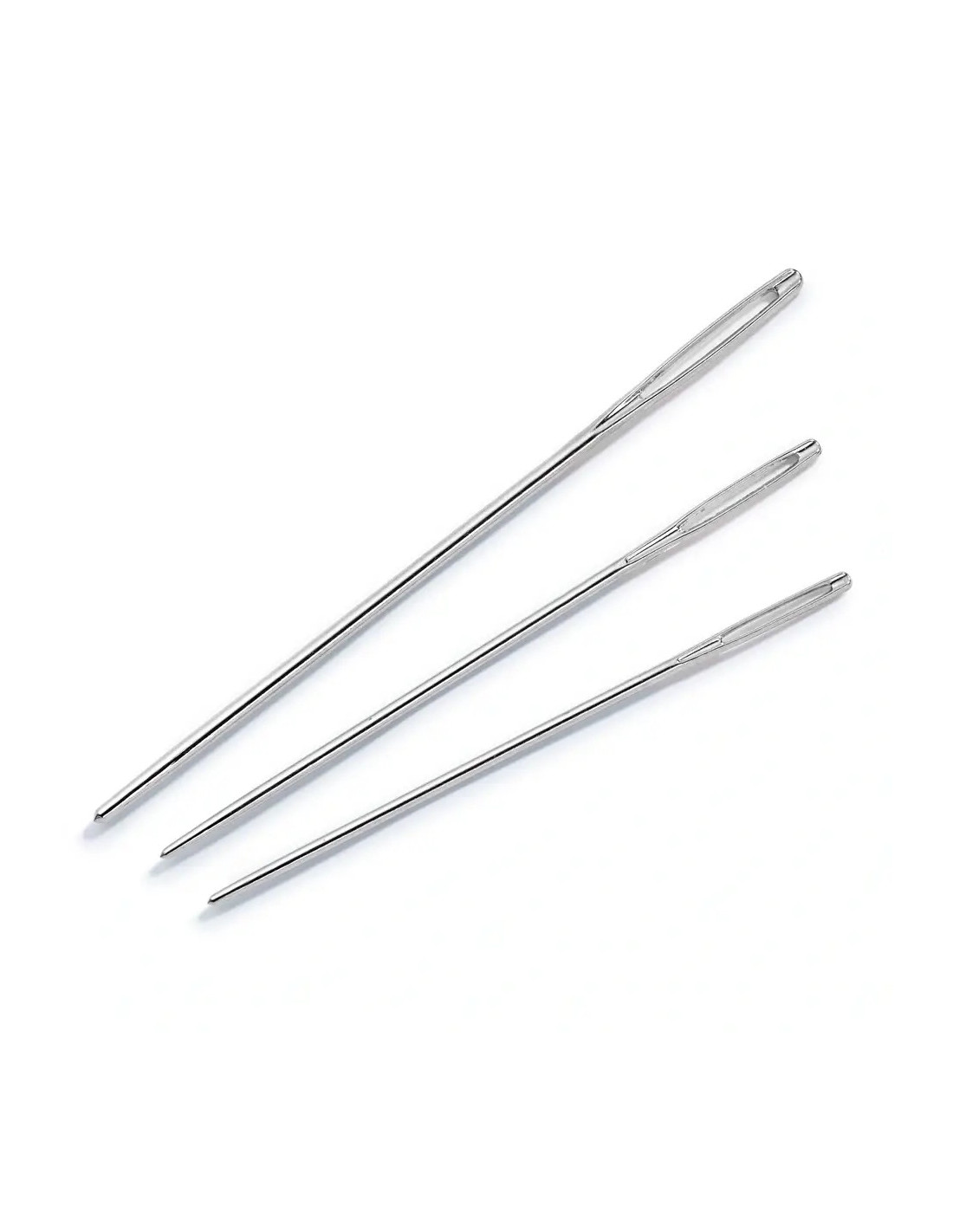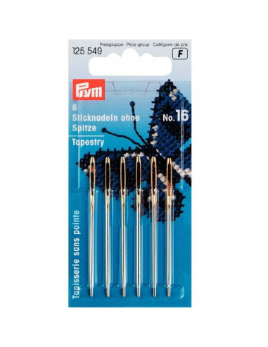 Les aiguilles à tapisserie sans pointe conviennent pour la broderie avec des matériaux plus grossiers telle la laine. En effet, l’extrémité arrondie ne traverse pas les fibres mais les pousse avec ménagement de côté. Les aiguilles avec un chas perforé symétriquement sont absolument exemptes de bavures et en acier trempé. Le chas des aiguilles à tapisserie est en conséquence grand pour enfiler laine ou fils grossiers. Un rapport équilibré de longueur et de puissance leur donne également une bonne élasticité.