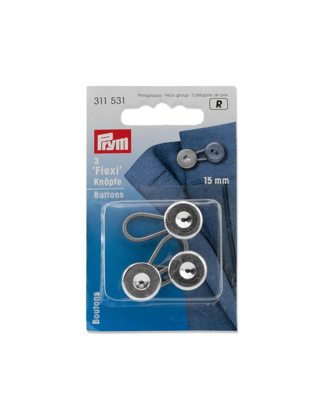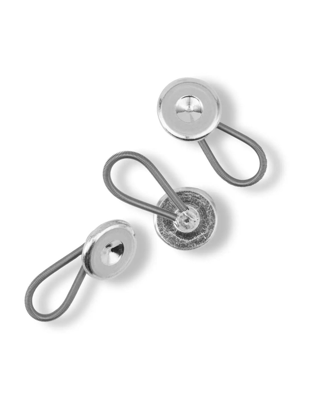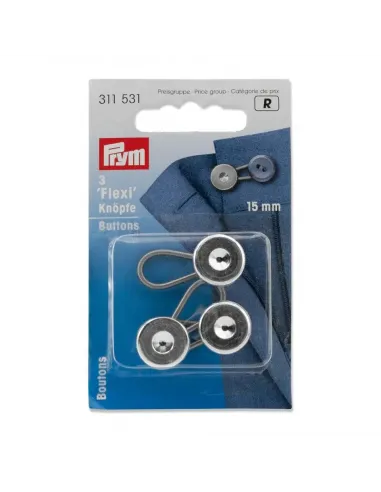 Vous avez les boutons flexi en métal au cas où le tour de col ou de taille varie. Avec sa boucle flexible en acier à ressort, ils sont fixés au bouton régulier et peuvent être ensuite facilement fermés avec la boutonnière. Les boutons flexi pratiques sont disponibles triés dans les tailles 10, 15 et 19 mm ou par 3 pièces en tailles 15 mm et 19 mm.