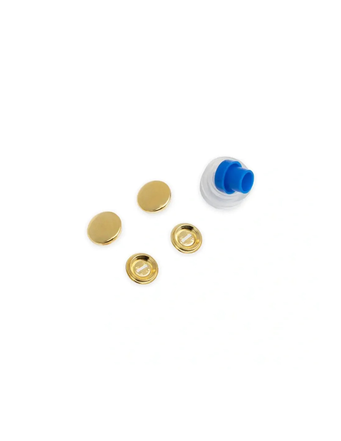 Prym offre les ébauches de boutons en métal inoxydable avec œillet métallique robuste en différentes tailles avec un outil approprié. Ainsi vous pouvez fabriquer plus facilement vos boutons personnalisés pour vos propres créations. Une roue dentée sur le côté intérieur du bouton maintient le tissu tendu uniformément. Le guide en annexe montre comment cela fonctionne. Un patron est également représenté sur l'emballage pour une découpe circulaire du tissu. Selon le tissu utilisé, les boutons finis sont lavables jusqu'à 60 degrés.