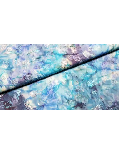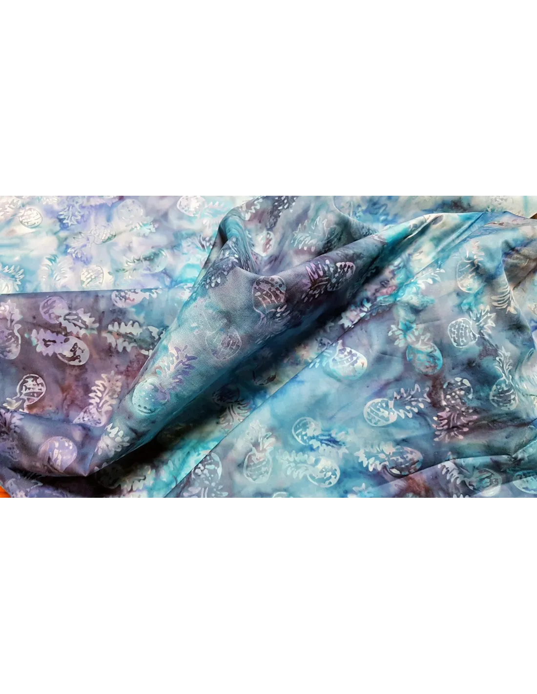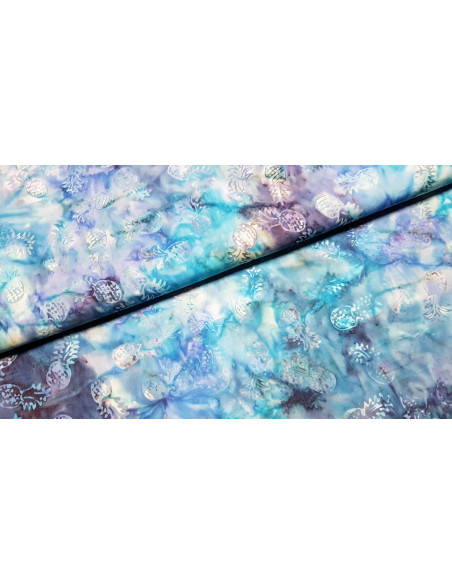 Batik de coton a imprimés ananas sur fond bleu En 112cm de large.