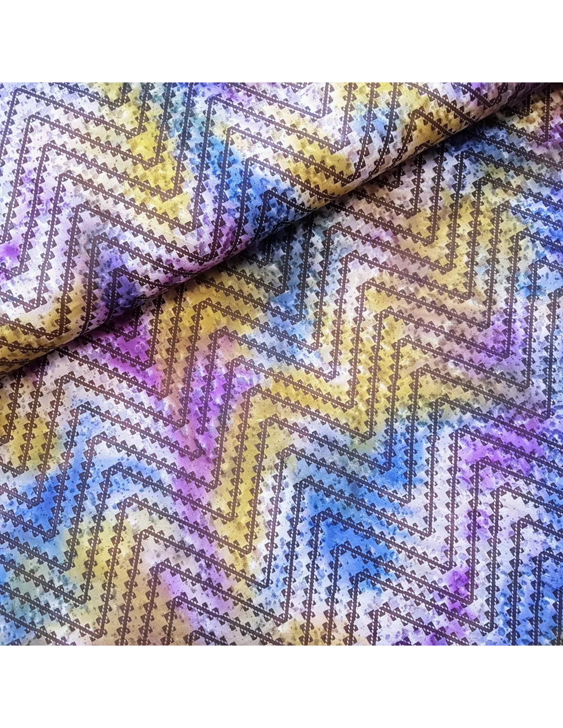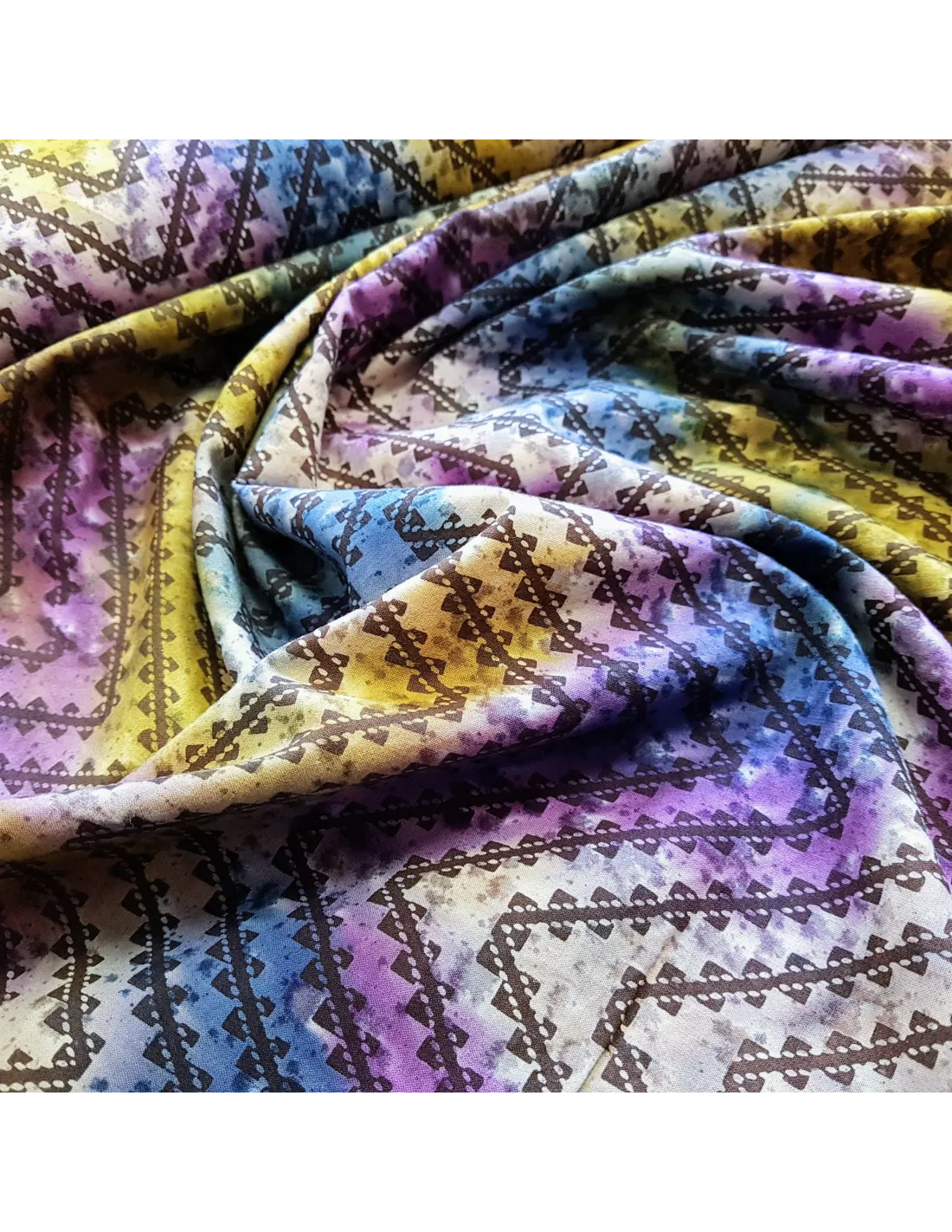 Véritable batik de coton dans les tons violets. Parfait pour l'habillement ou l'ameublement.