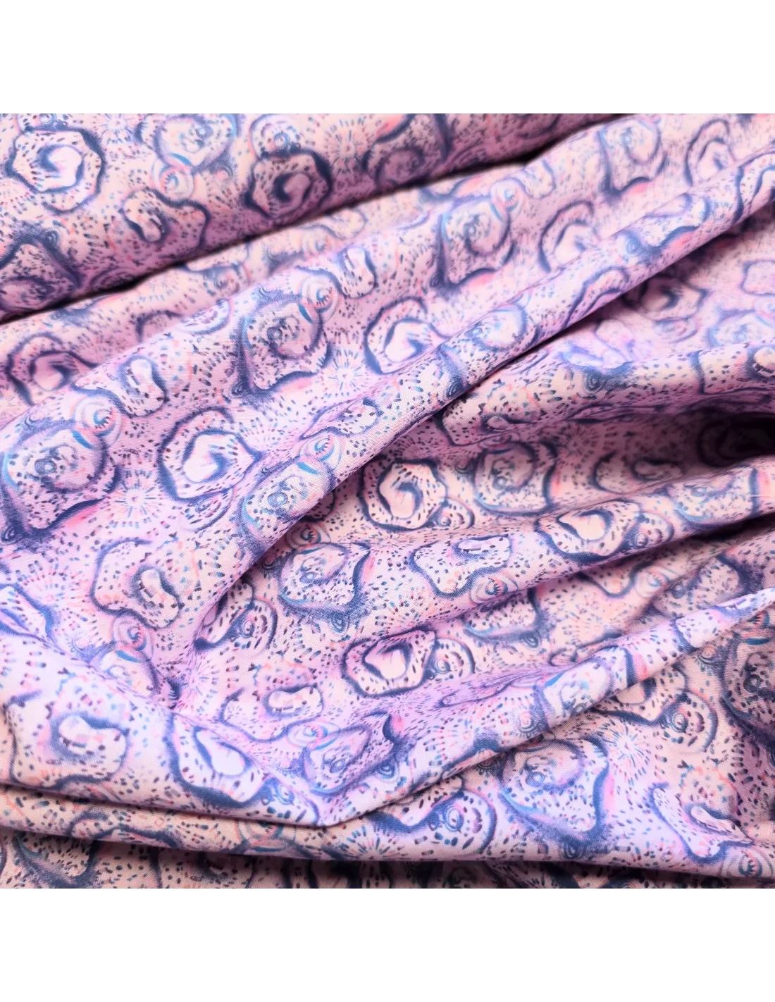 Popeline de coton, impression digitale esprit batik. Conviendra pour l'habillement. Touché doux et souple.
