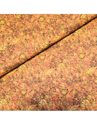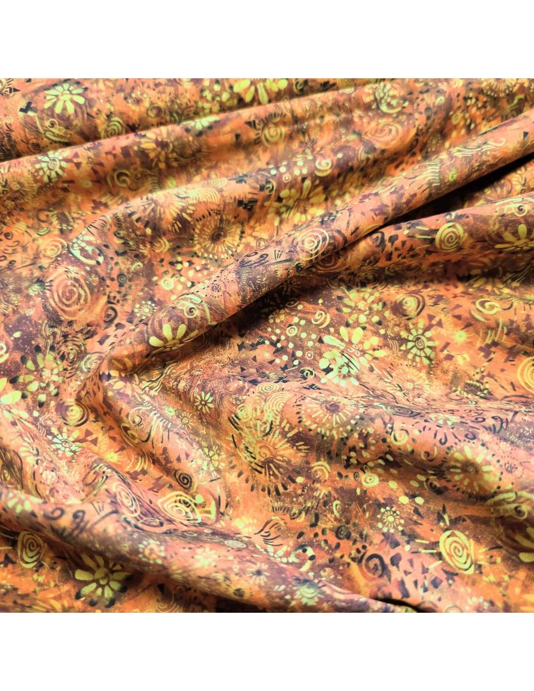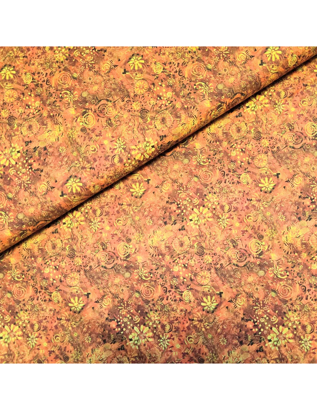 Popeline de coton, impression digitale esprit batik. Conviendra pour l'habillement. Touché doux et souple.