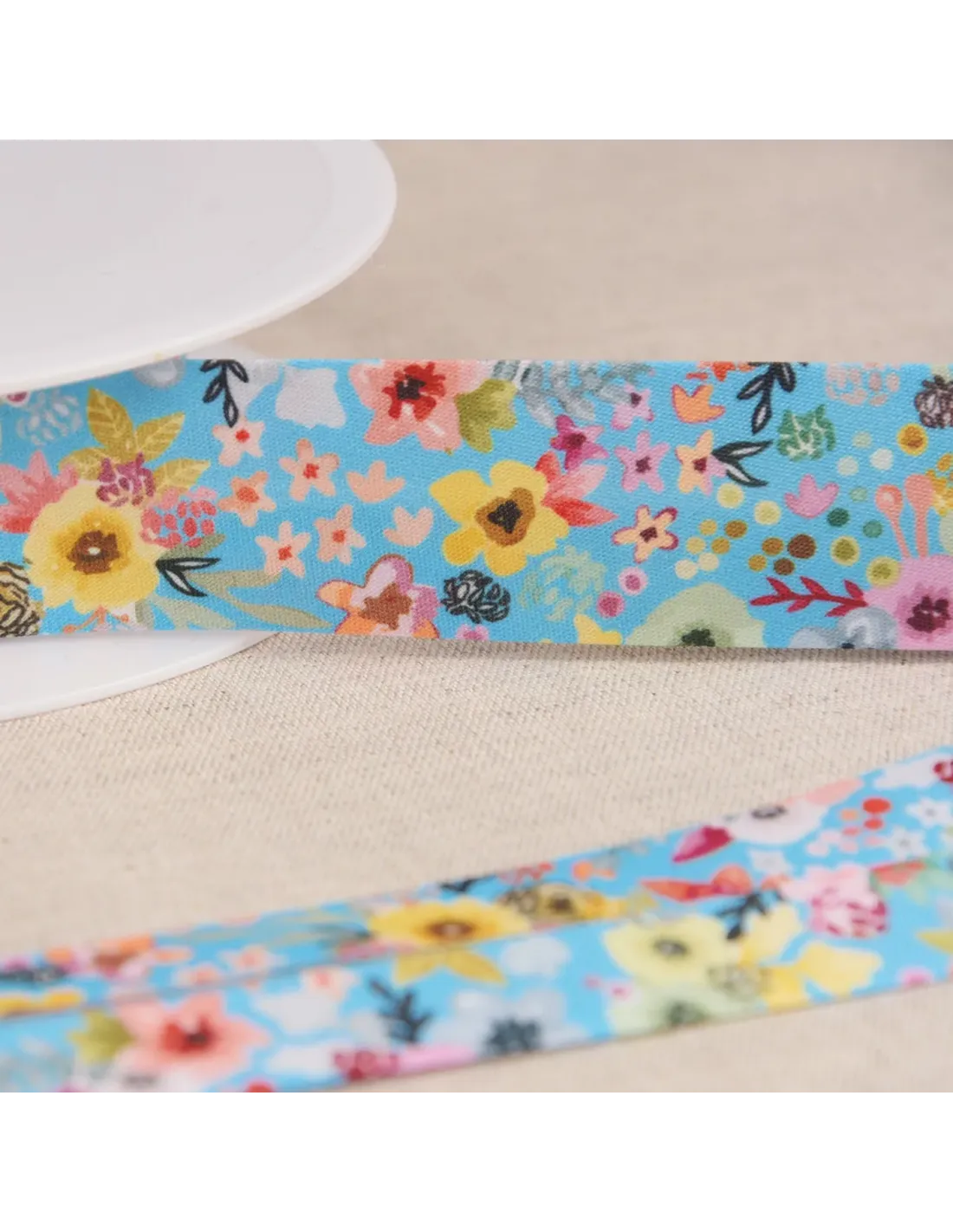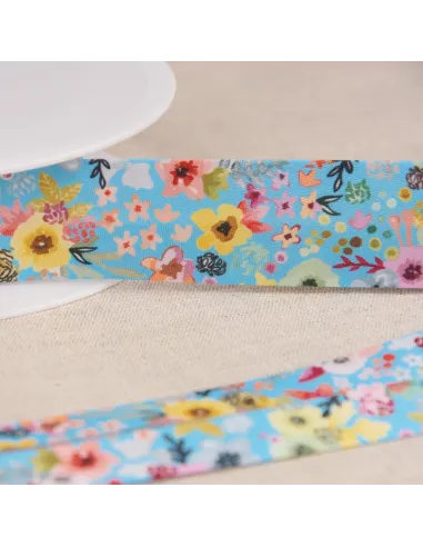 Biais polyester idéal pour tous les travaux de couture, imprimé fleurs.