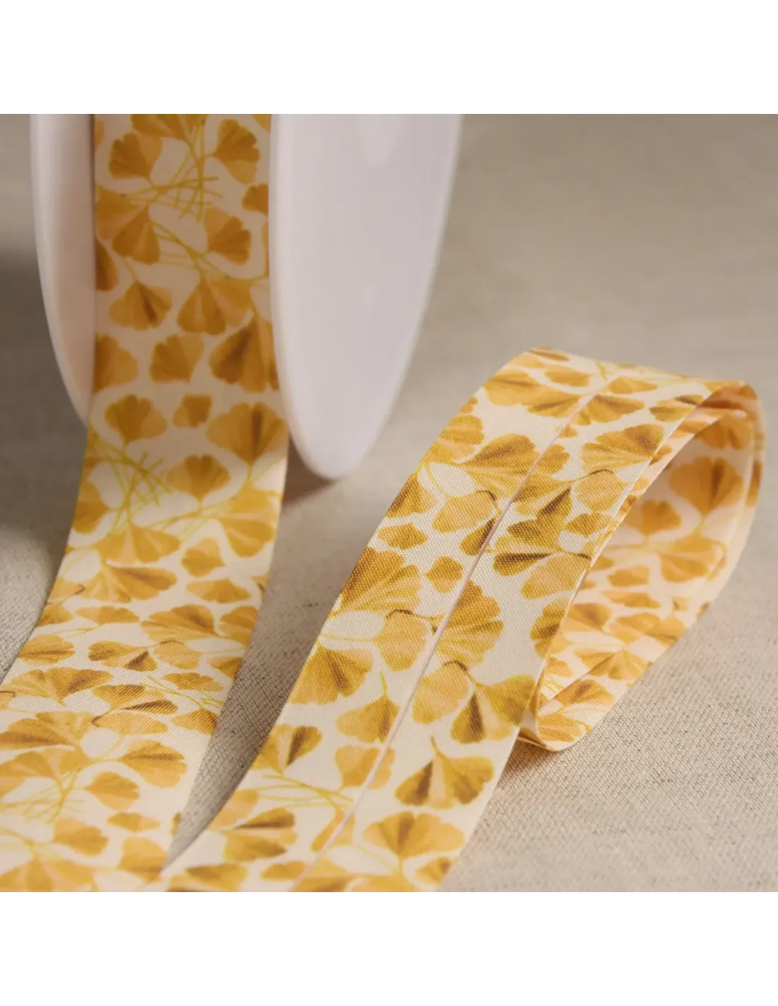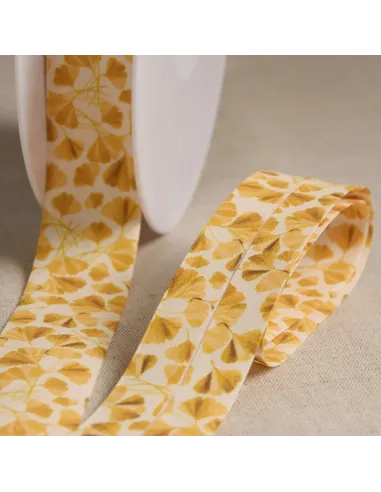 Biais polyester idéal pour tous les travaux de couture, imprimé gingko.