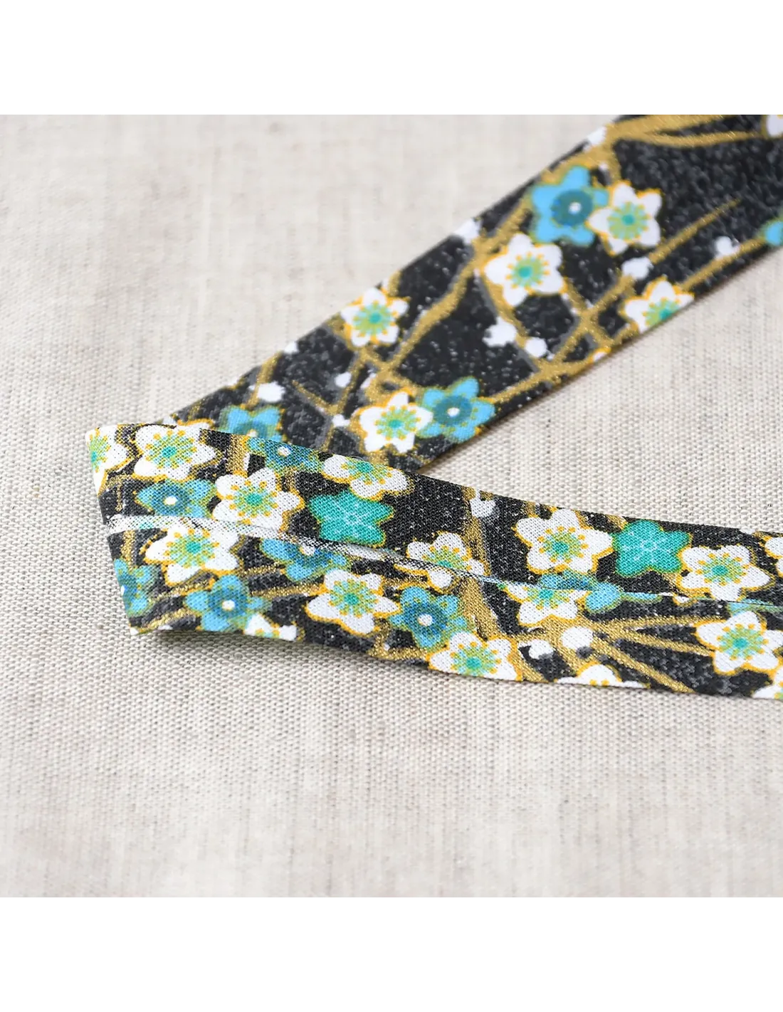 Biais polyester idéal pour tous les travaux de couture, imprimé fleurs.