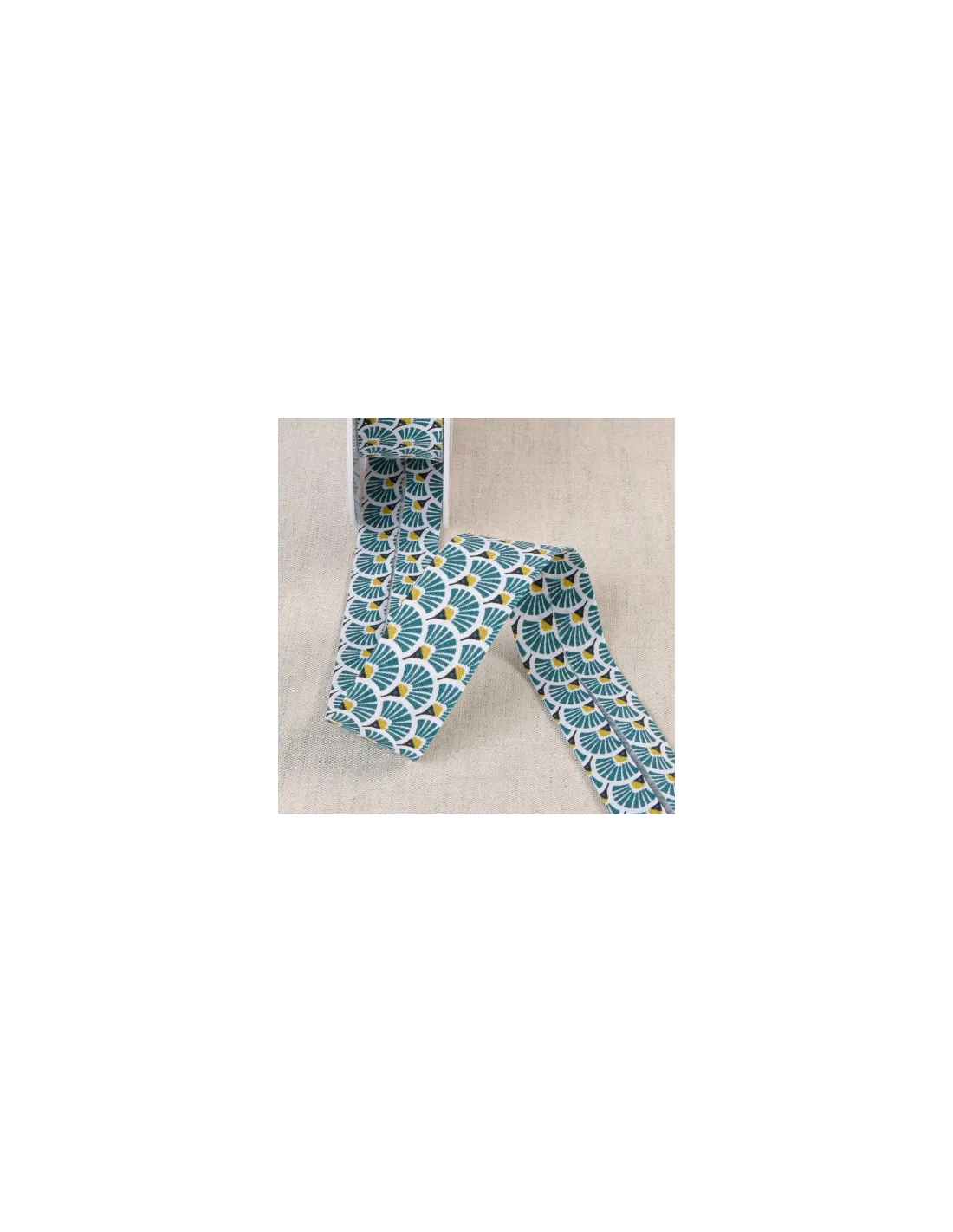 Biais coton idéal pour tous les travaux de couture, imprimés éventails vert canard.