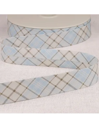 Biais tout textile, 25mm, écossais, bleu
