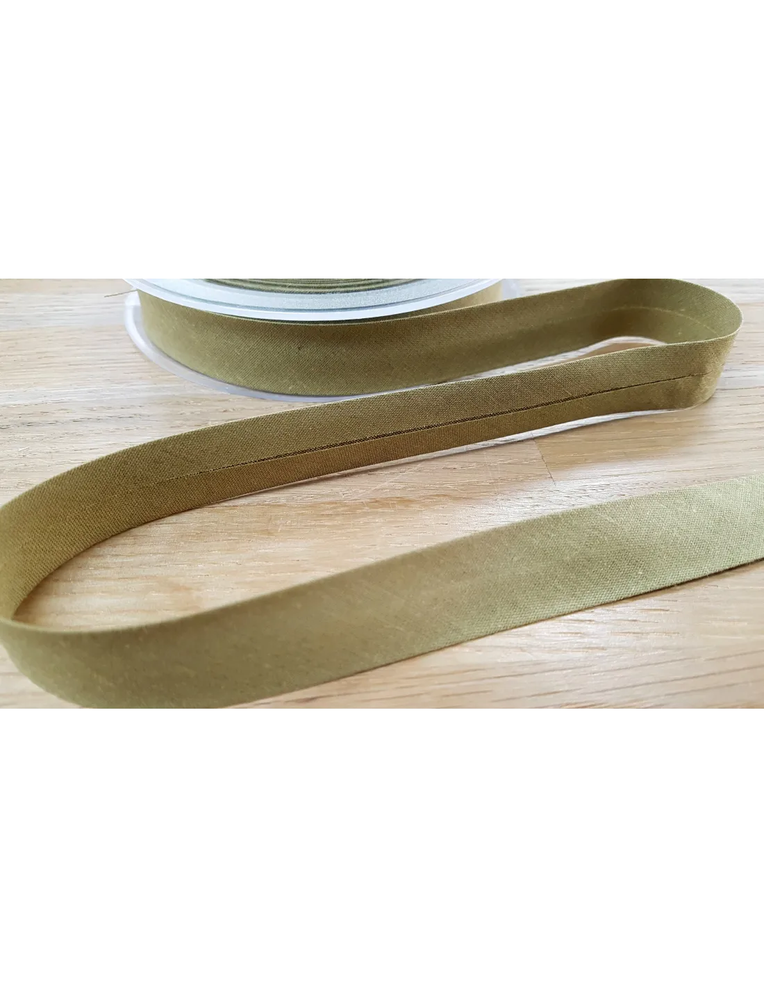 Biais tout textile, polycoton, 20mm, kaki clair