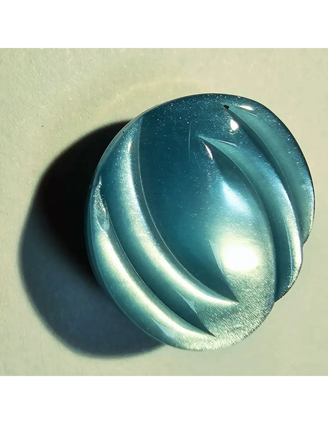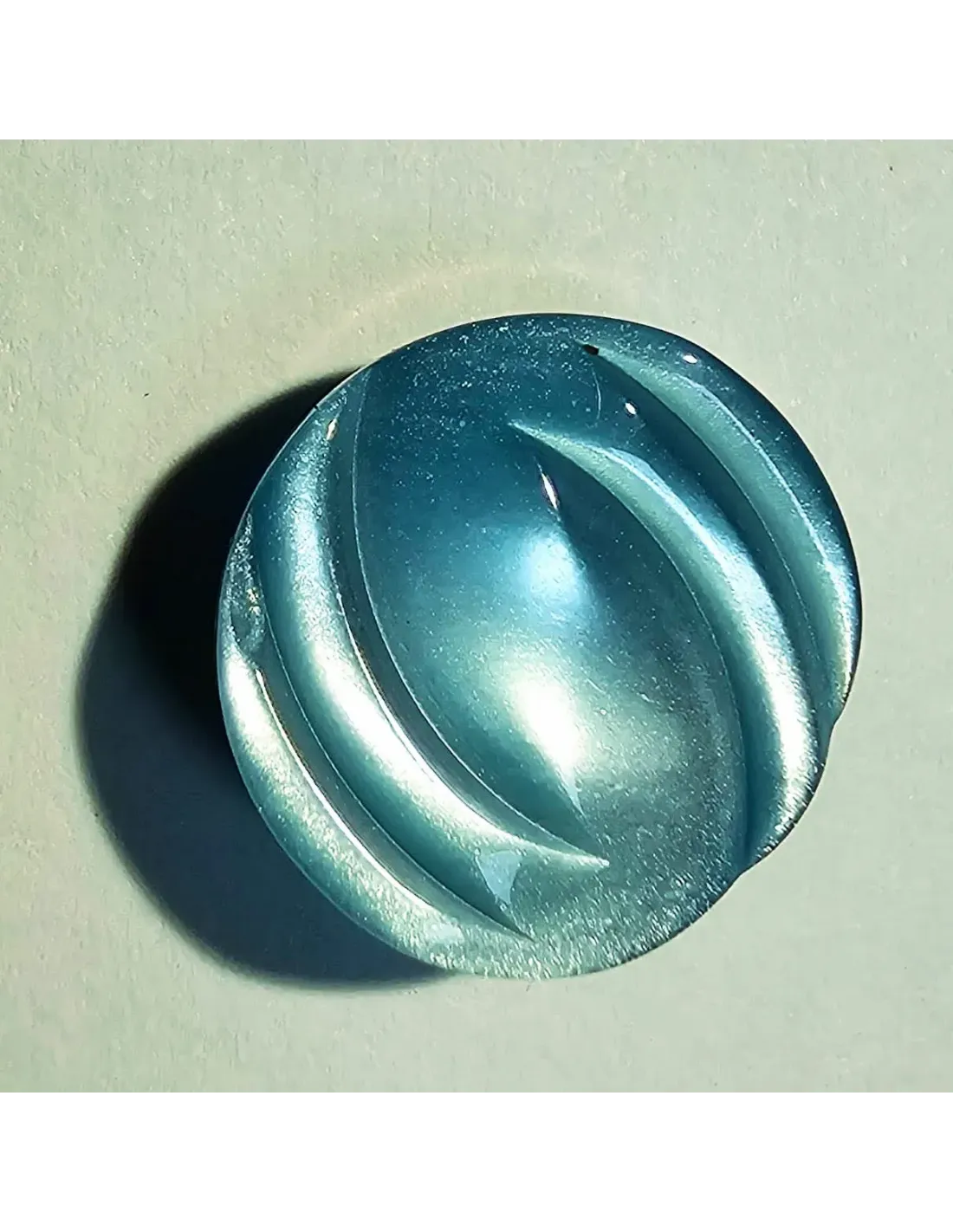Bouton polyester à pied , rond fantaisie, bleu turquoise