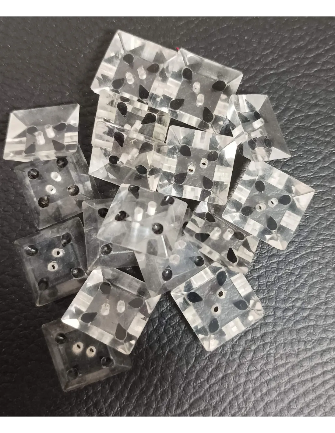 Bouton 2 trous, Ø 16 mm, transparent et noir