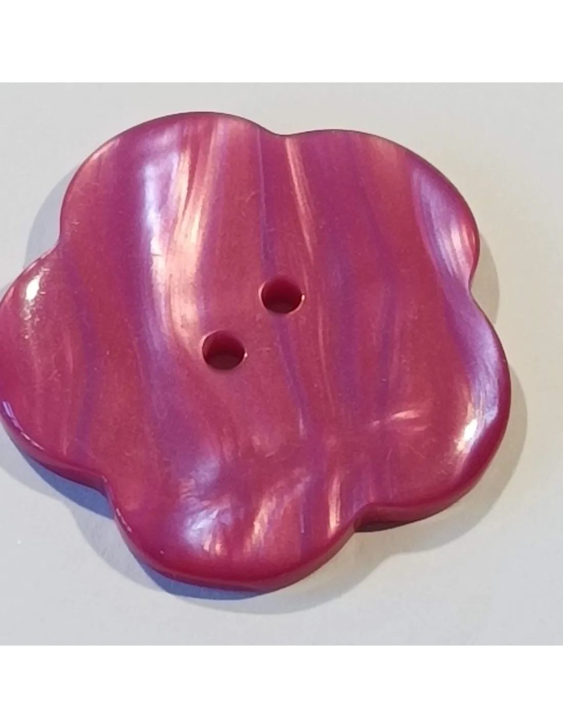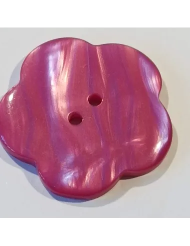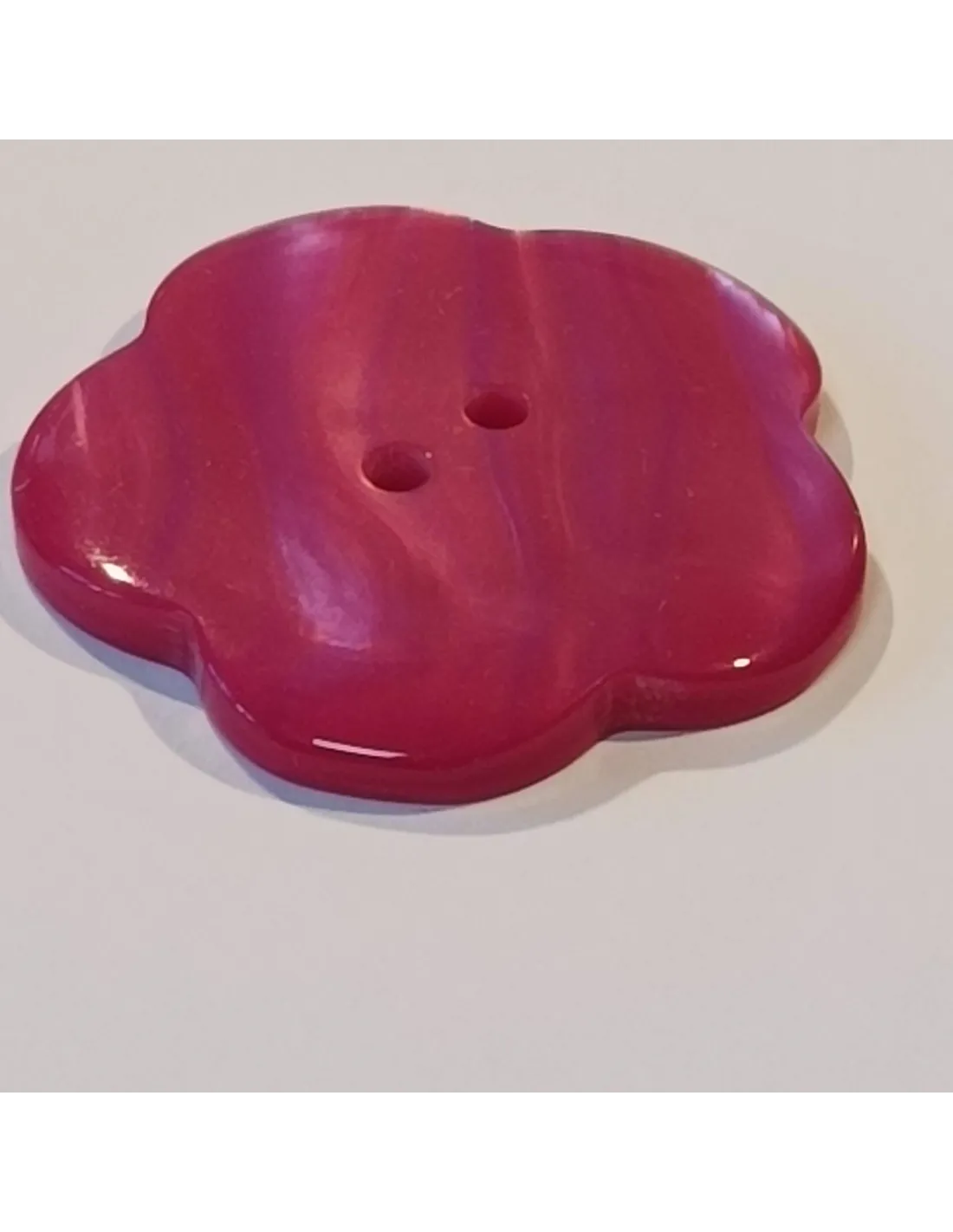 Bouton polyester 2 trous, 35mm, fleur, rose fuchsia
