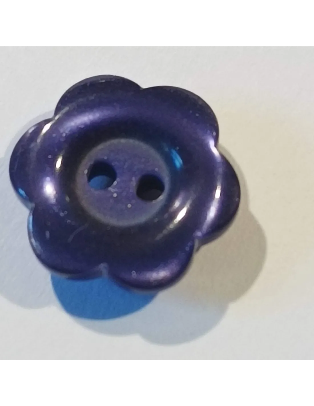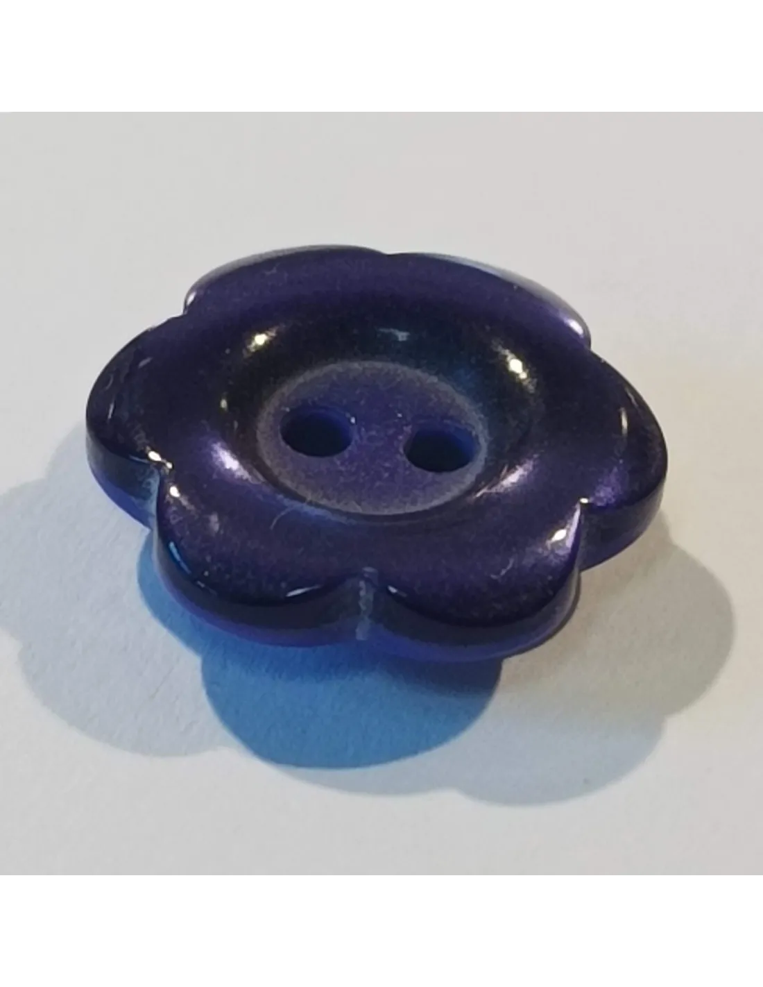 Bouton polyester 2 trous, 15mm, fleur, violet