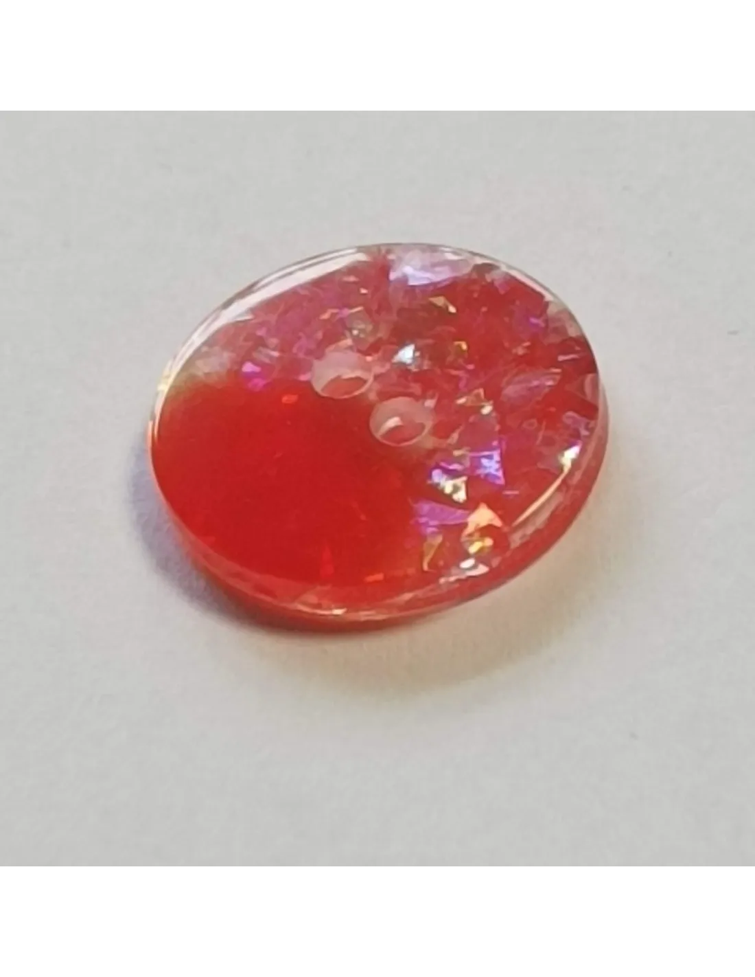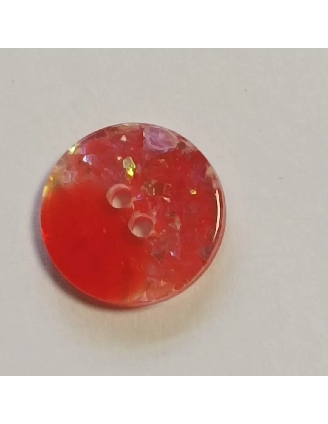 Bouton polyester 2 trous, 14mm, rond rouge, coté paillettes