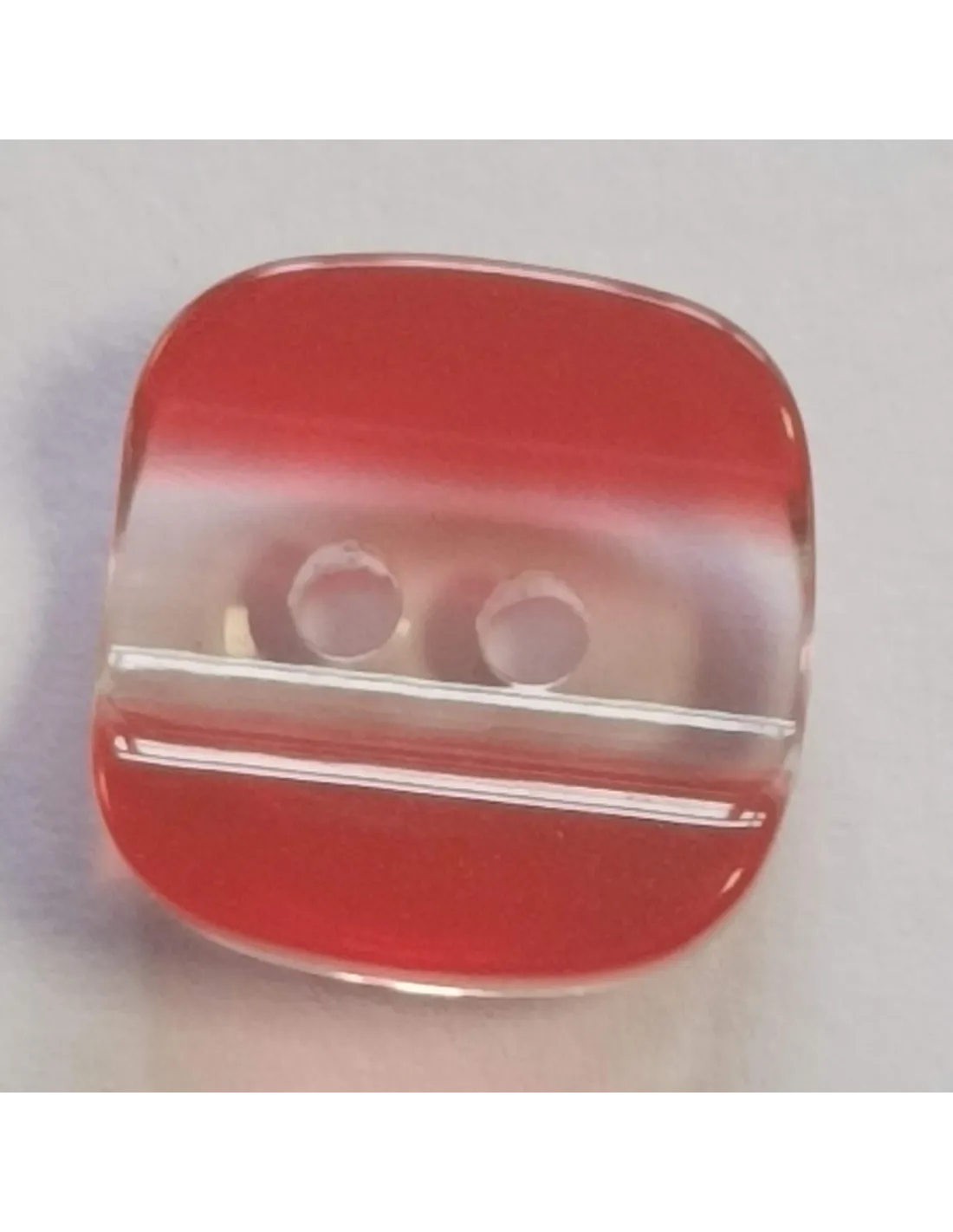 Bouton polyester 2 trous, 13mm, carré transparent et rouge