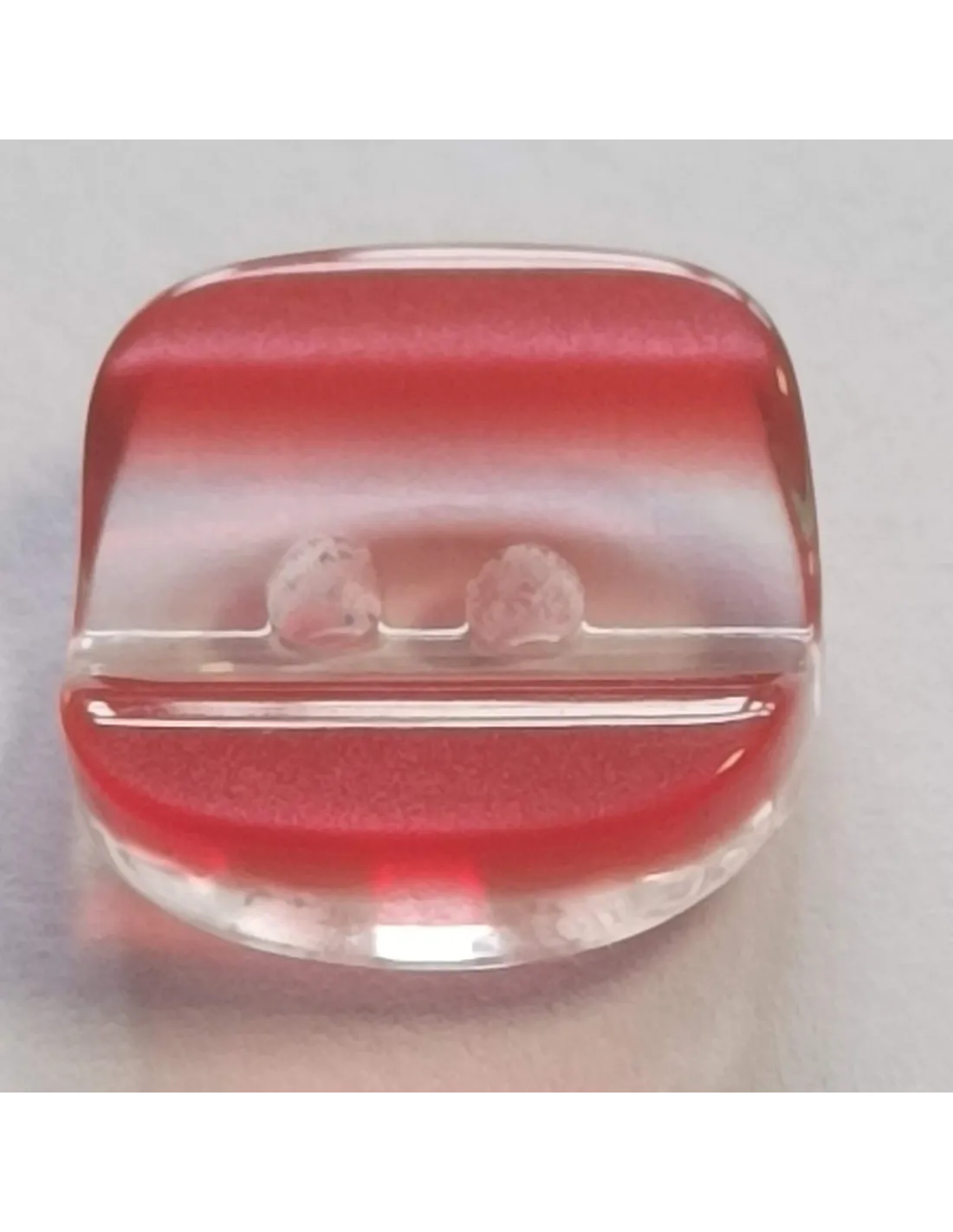 Bouton polyester 2 trous, carré transparent et rouge