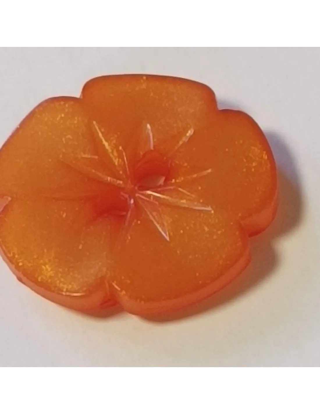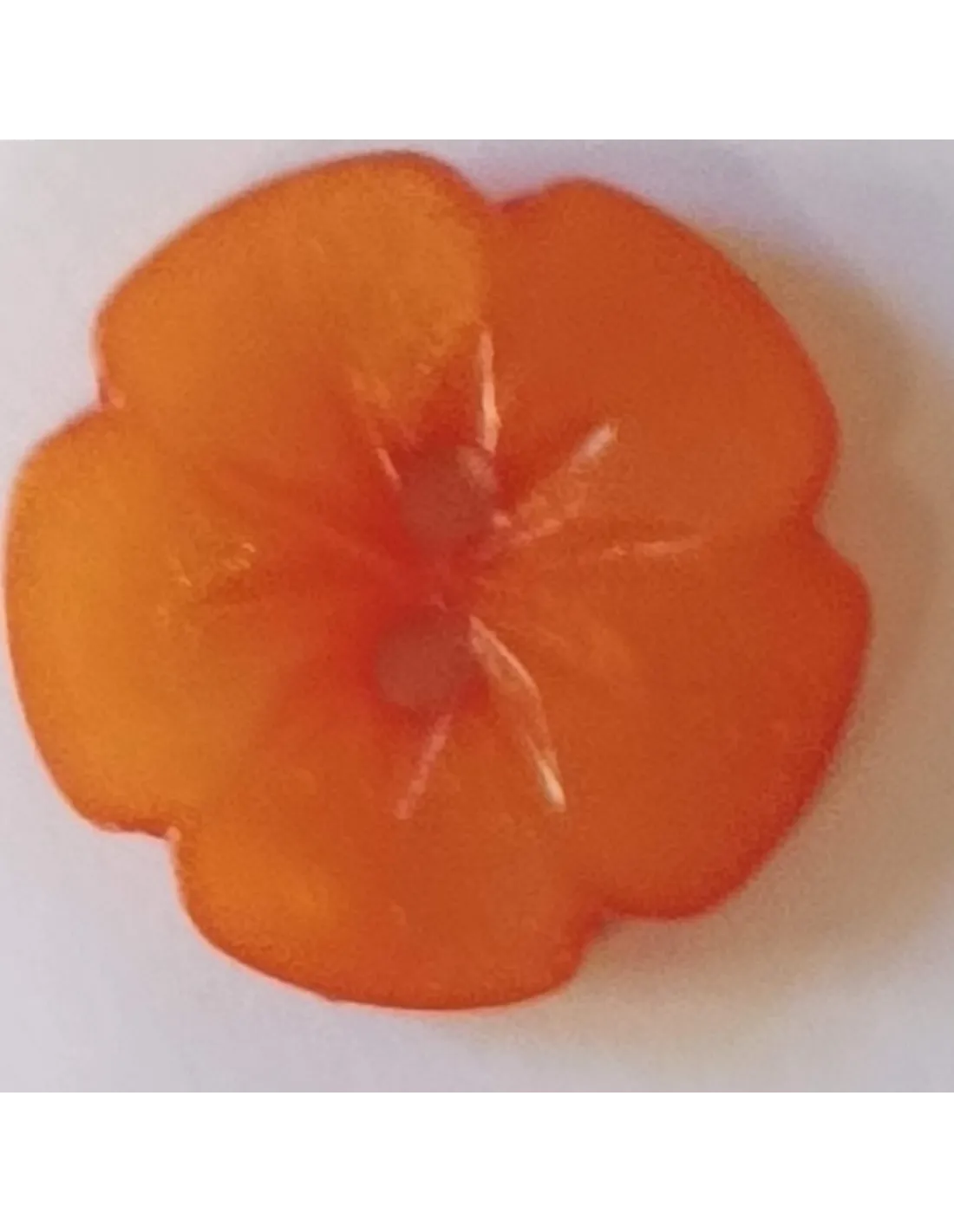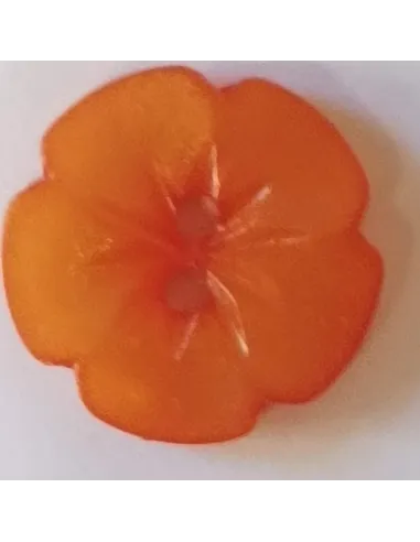Bouton polyester 2 trous, 15mm, rond orange fleur