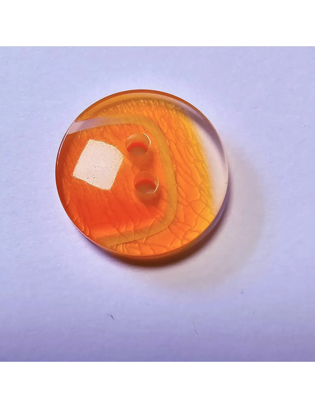 Bouton polyester 2 trous , 18mm , rond orange