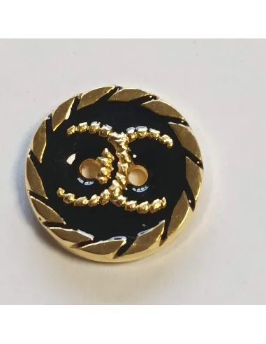 Bouton polyester 2 trous, 32 mm, noir et doré