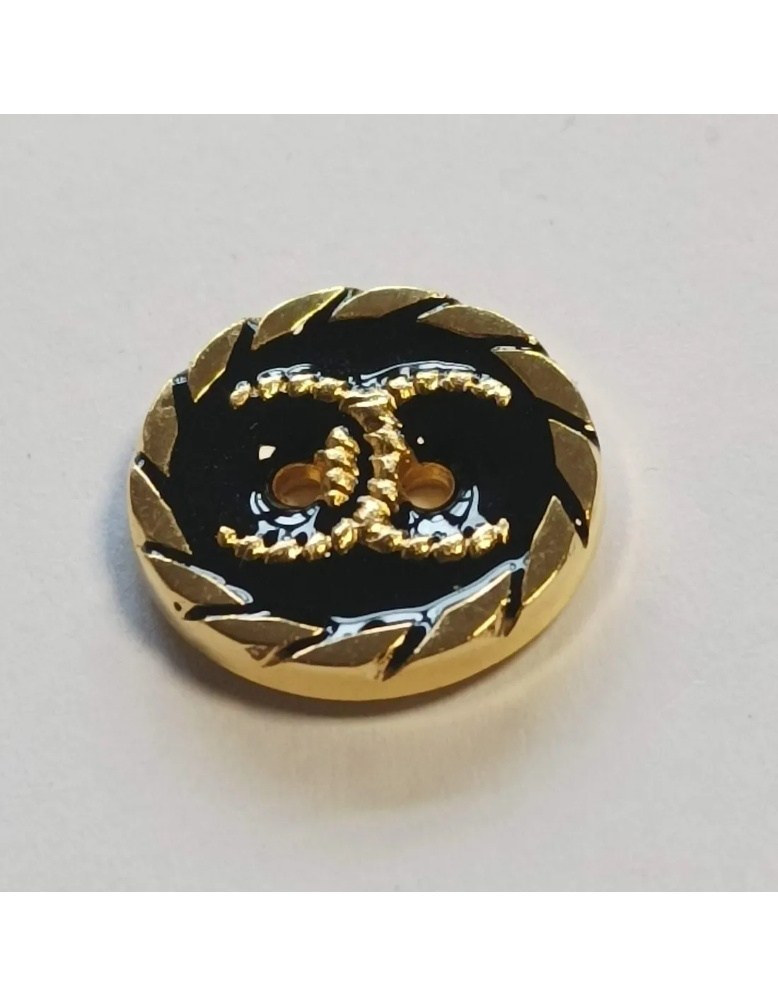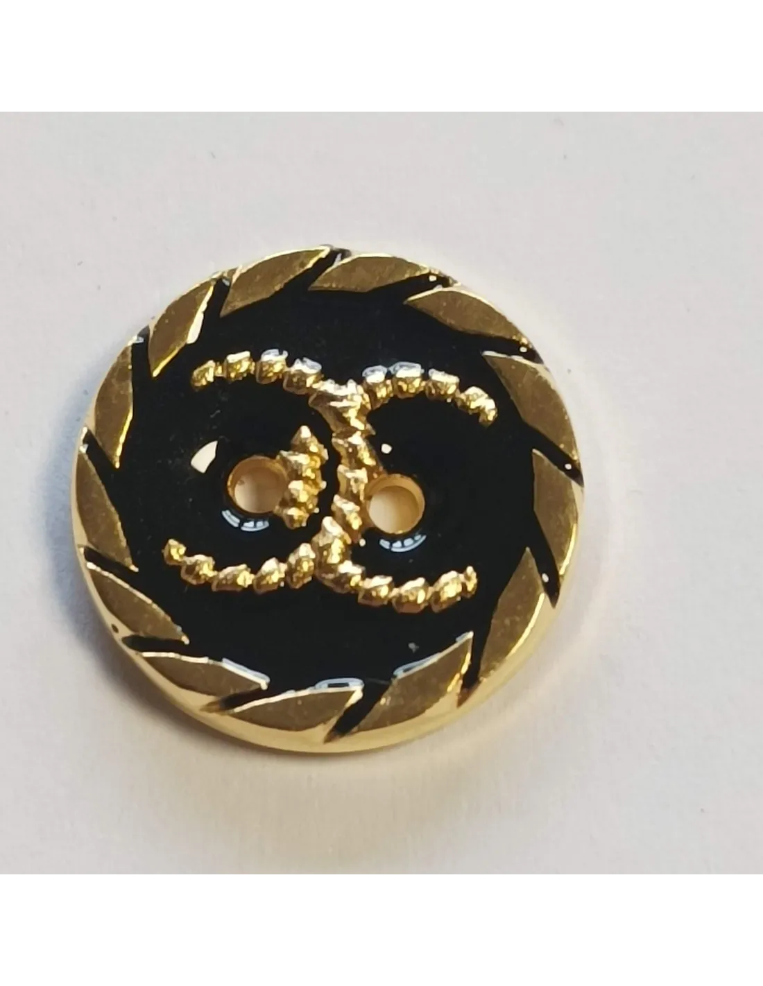 Bouton polyester 2 trous, 36 mm, noir et doré