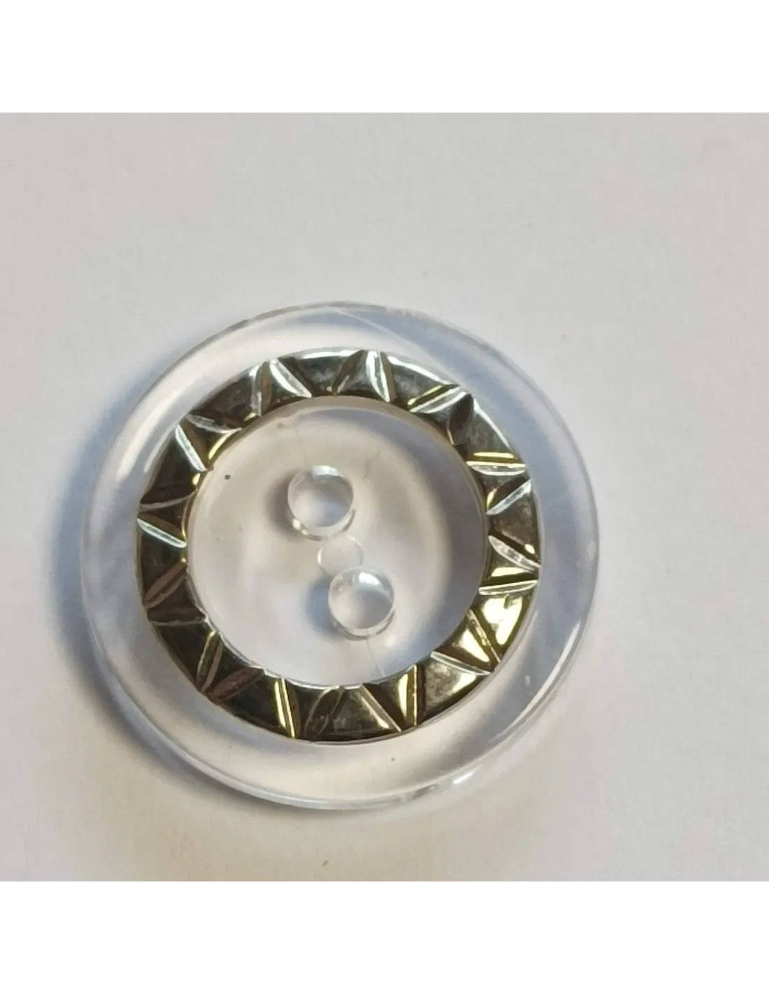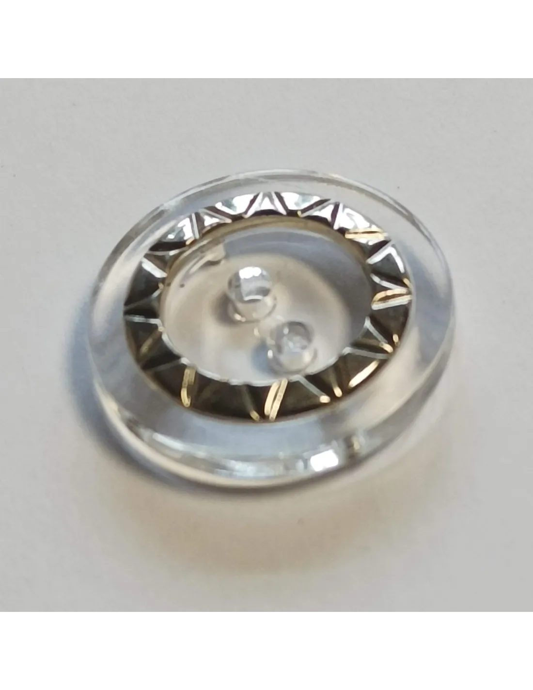 Bouton polyester 2 trous, 32 mm, transparent et argenté