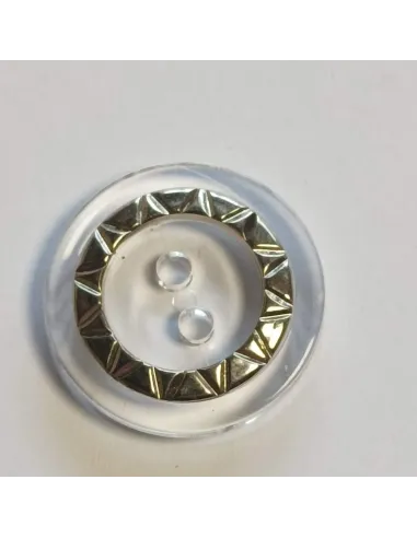 Bouton polyester 2 trous, 36 mm, transparent et argenté