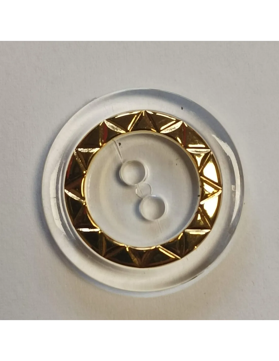 Bouton polyester 2 trous, 36 mm, transparent et doré