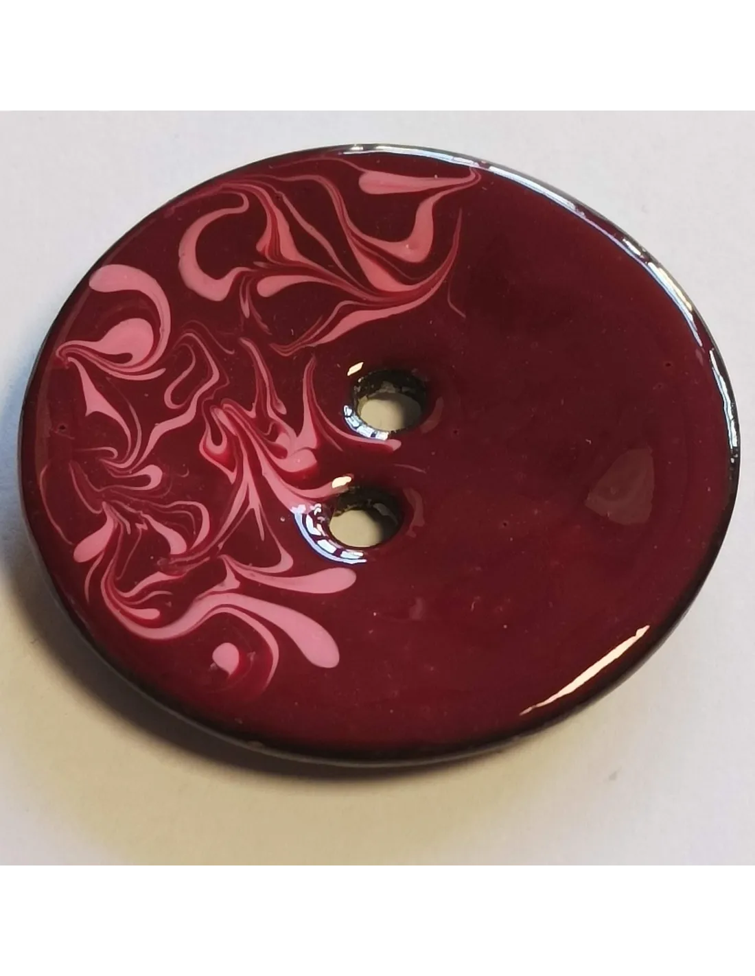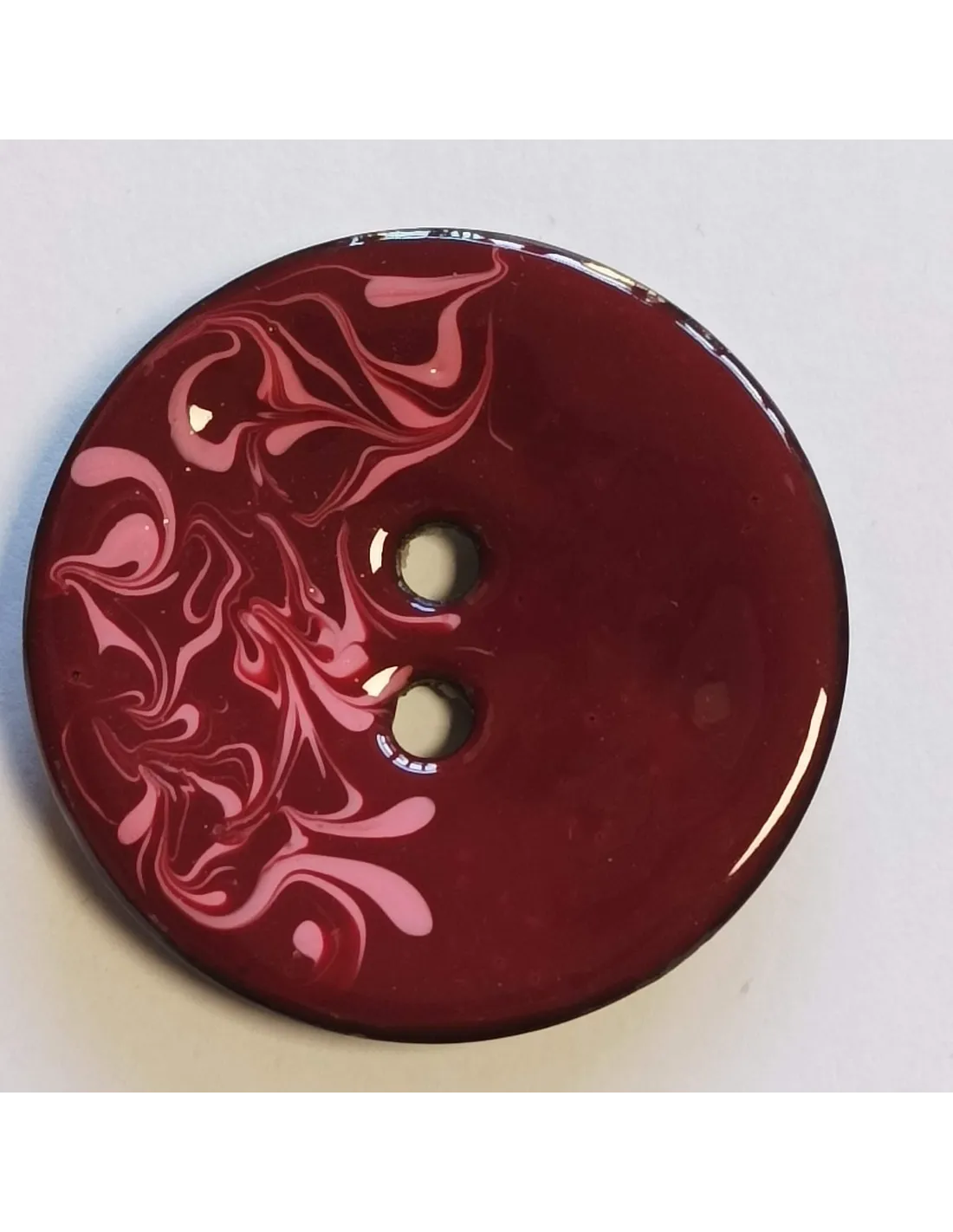 Bouton polyester 2 trous, 50 mm, bordeaux et rose