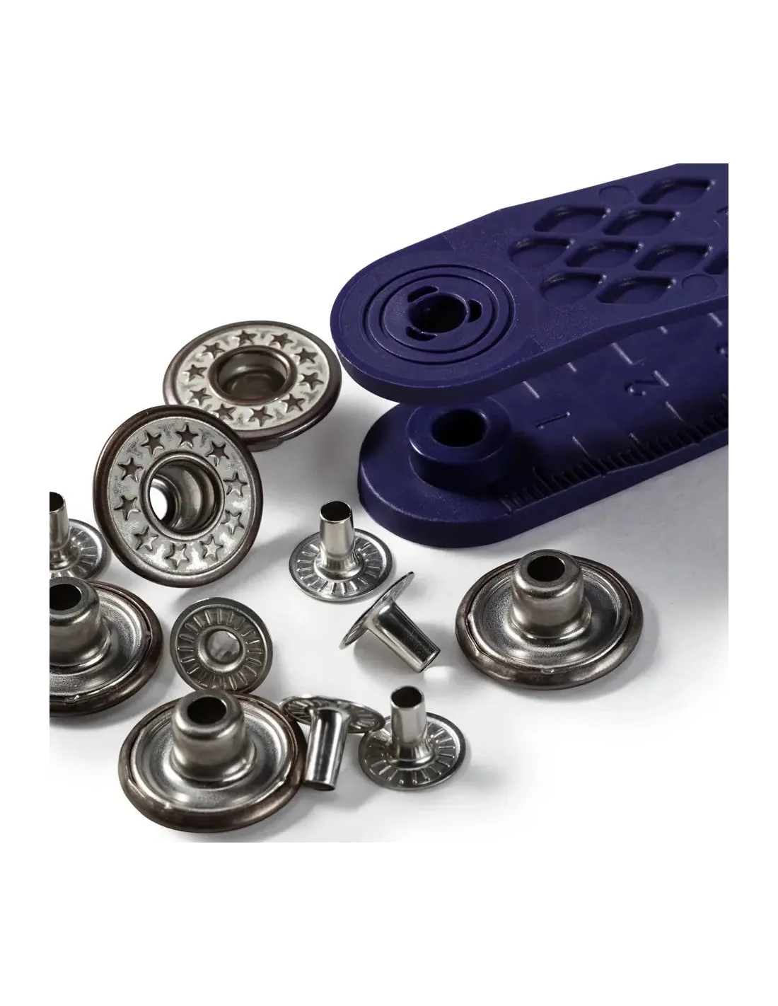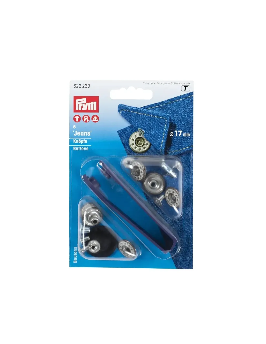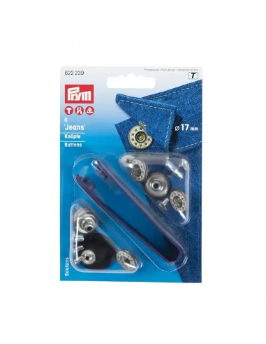 Les boutons jean de Prym sont fabriqués spécialement pour l’utilisation sur des blousons, des chemises et des pantalons en jean. Qu’ils soient boutons cultes, décontractés ou modernes: les nombreuses variantes des boutons jean permettent à chacun de trouver son bonheur. Envie de fleurs sur un jean pour enfant, du style américain pour un look cool ou encore d’un autre motif ? Vous trouverez ici votre bonheur ! Les boutons sans couture se posent avec l’outil fourni et un marteau, la pince VARIO à percer et à river ou le trépied. Fabriqués en laiton inoxydable, ces boutons jean peuvent bien entendu être lavés et nettoyés à 60 degrés.