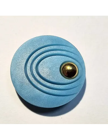 Bouton polyester à tunnel, rond bleu turquoise avec un point doré