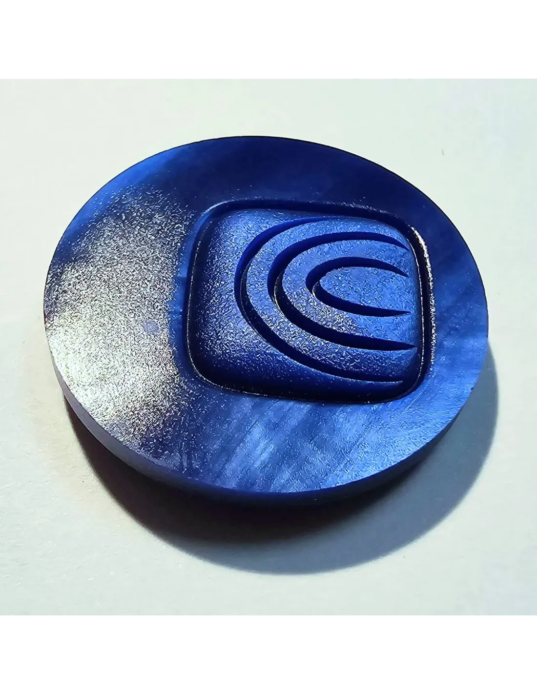 Bouton à tunnel, 23mm, rond avec un carré fantaisie, bleu