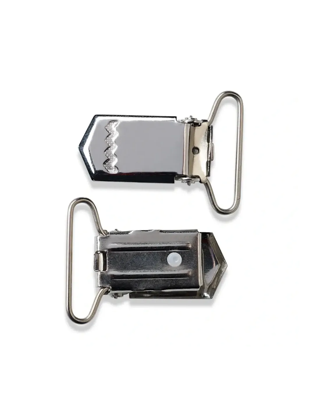 Le clip des bretelles ou de la salopette est défectueux sur un côté ou sur les deux en raison d'une forte sollicitation ? Pas de problème car ces clips pour bretelles peuvent être remplacés en tout confort. Les clips sont simplement cousus à la boucle - et la nouvelle fermeture est prête. En outre, la longueur des bretelles peut être modifiée avec la charnière, tout en leur apportant un maintien sûr des bretelles grâce à son engrenage. Les clips pour bretelles argentés impressionnent par leur mécanisme de fermeture fiable dont la tension ne lâche pas même après une longue utilisation. Ils sont disponibles en différentes largeurs.