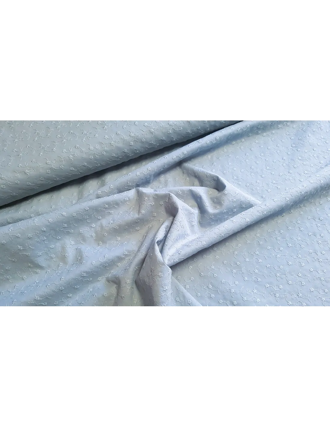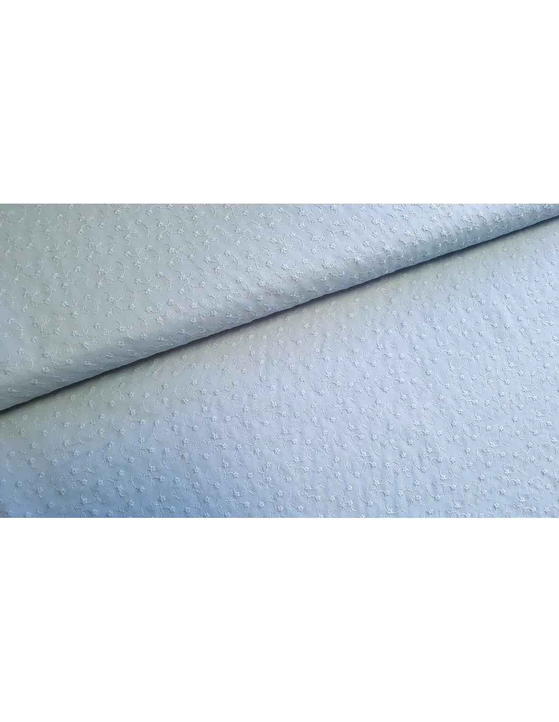 Superbe tissu broderie anglaise sur fond bleu jeans.