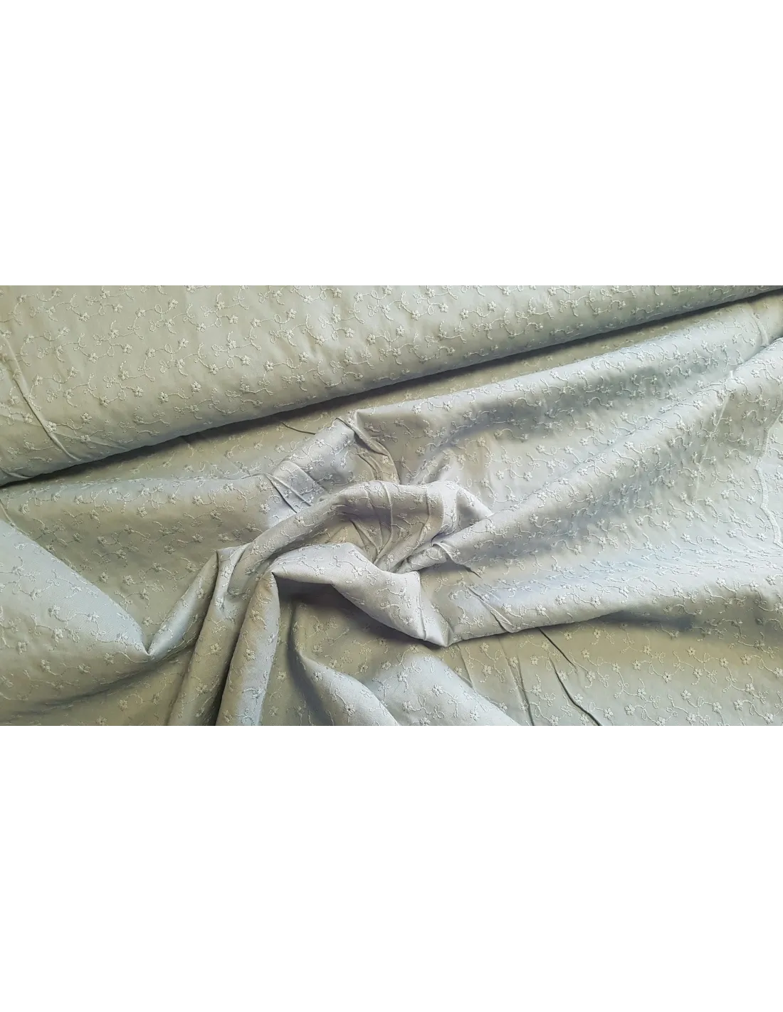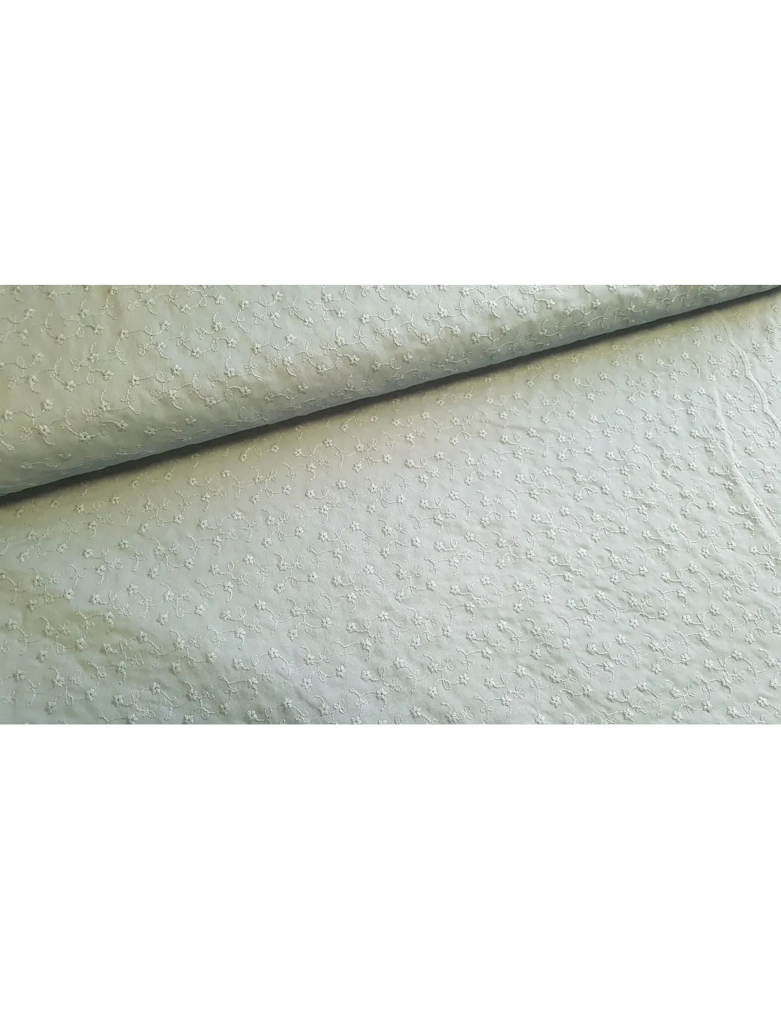 Superbe tissu broderie anglaise sur fond vert d'eau.