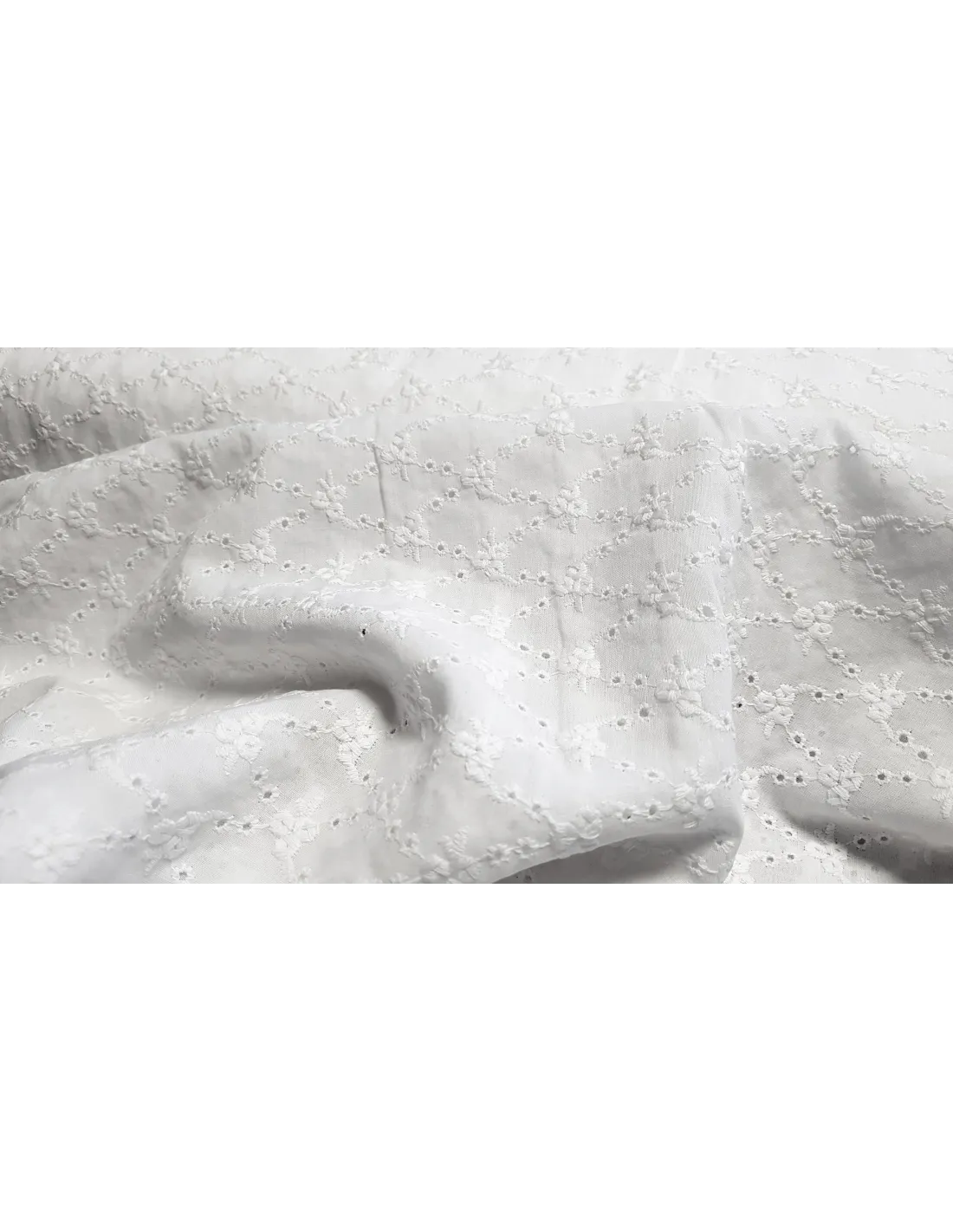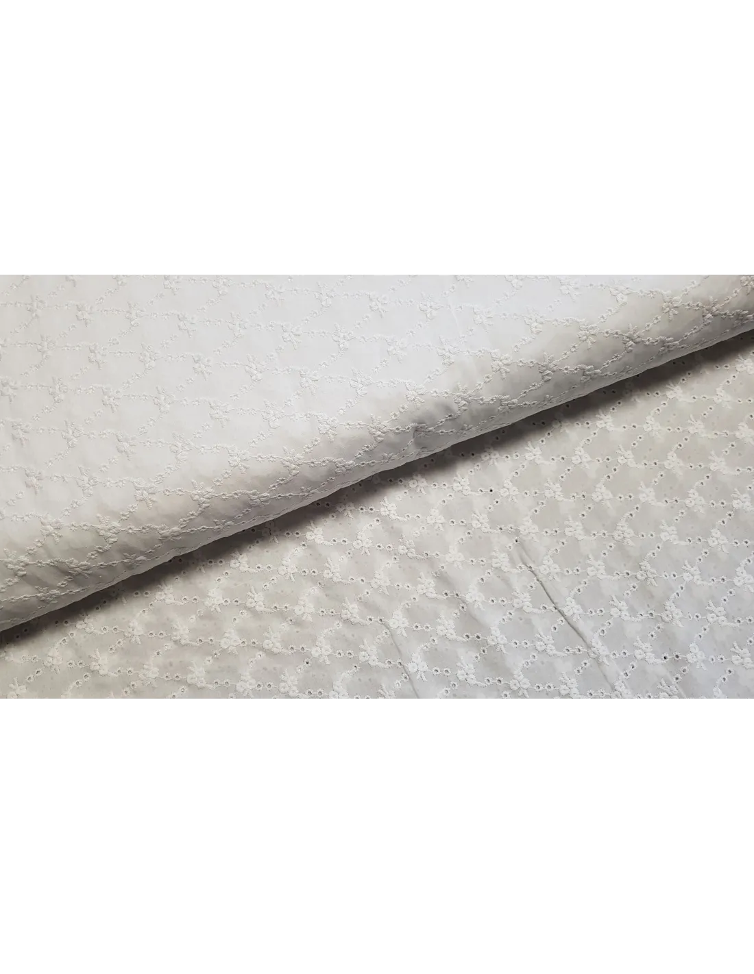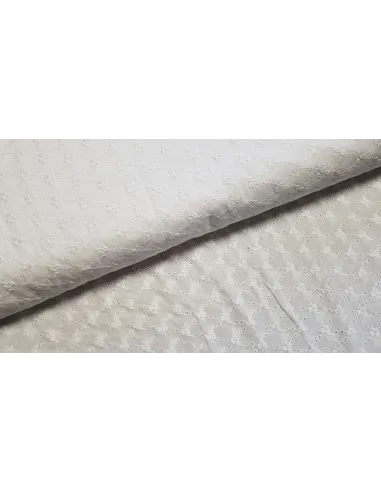 Broderie anglaise, dessins petites fleurs, sur fond blanc. Festonnée des deux cotés. Parfaite pour un petit haut d'été, une robe...