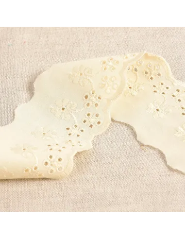 Ruban broderie anglaise, 55mm, fleurs, écru