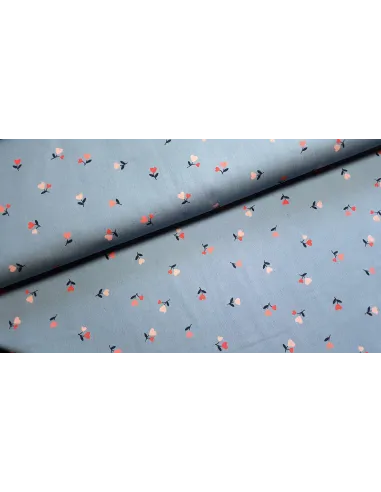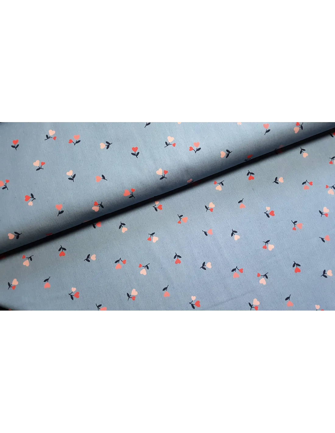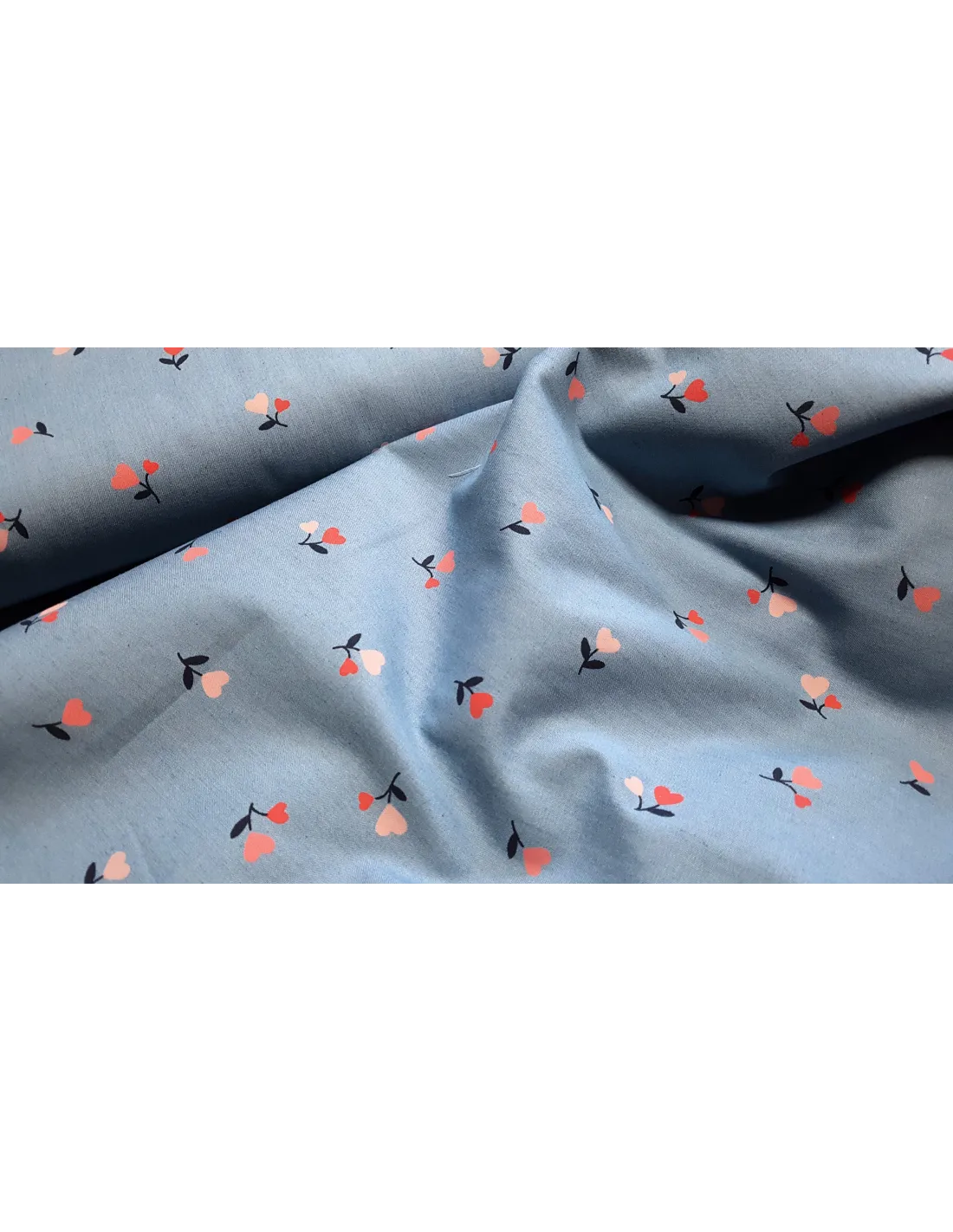 Coton chambray avec des imprimés petites fleurs en cœurs
