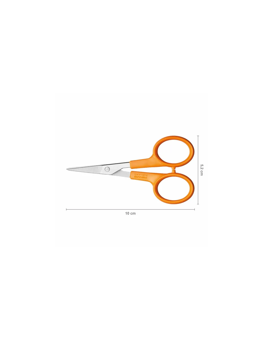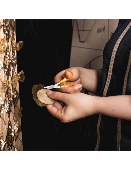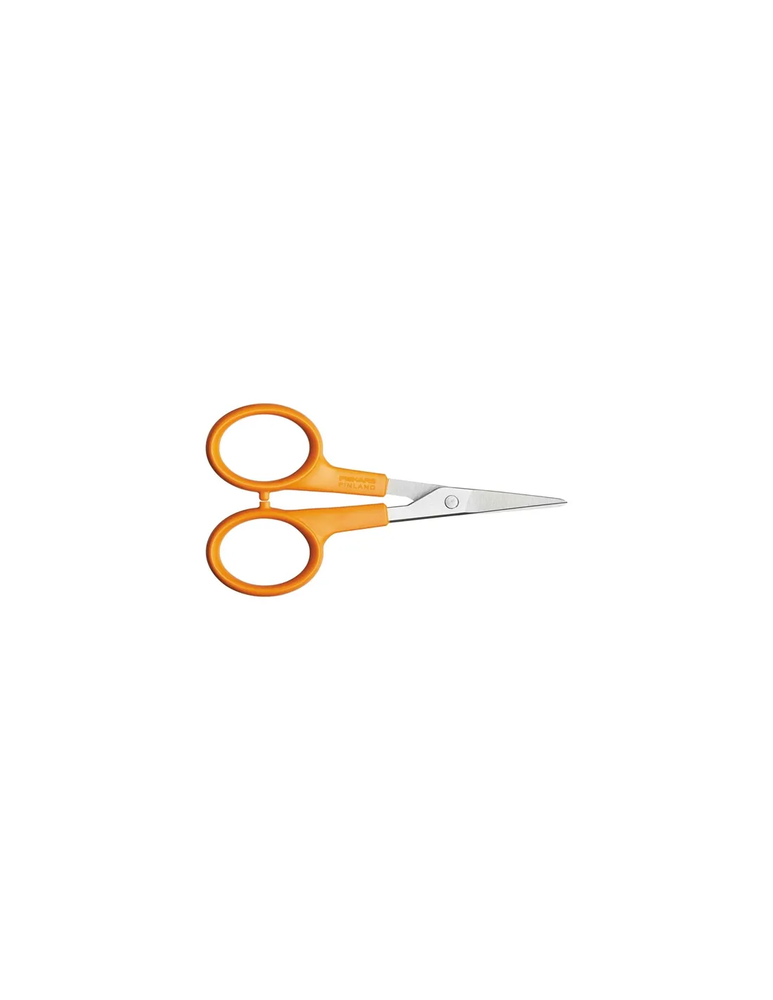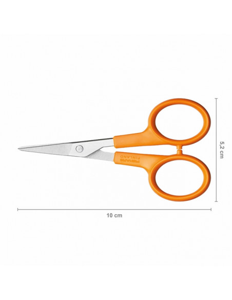 Les ciseaux Classic Fiskars aux anneaux orange sont une référence en matière de qualité. Les anneaux moulés ergonomiques au design unique breveté permettent une ergonomie et un confort élevé. Les lames en acier inoxydable de la plus haute qualité sont fabriquées en Finlande, elles sont forgées et trempées à des températures extrêmes durant le processus de fabrication. Elles garantissent une efficacité de coupe durable. Pointe fine pour des découpes complexes et minutieuses: accès facile sous le pied de la machine à coudre. Idéal pour du hardanger, des découpes d'angles et de courbes. Ciseaux utilisés également pour la manucure. Ambidextres.