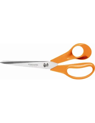 Les ciseaux Classic Fiskars aux anneaux oranges sont la référence en matière de qualité. Les anneaux moulés ergonomiques au design unique breveté permettent une ergonomie et un confort élevé. Les lames en acier inoxydable de la plus haute qualité sont fabriquées en Finlande, elles sont forgées et trempées à des températures extrêmes durant le processus de fabrication. Elles garantissent une efficacité de coupe durable. Elles sont facettées et affûtées à 60° pour un tranchant de longue durée et une précision de coupe parfaite. Vis pour ajuster les lames en fonction de l'épaisseur des matériaux: améliore la performance de coupe.